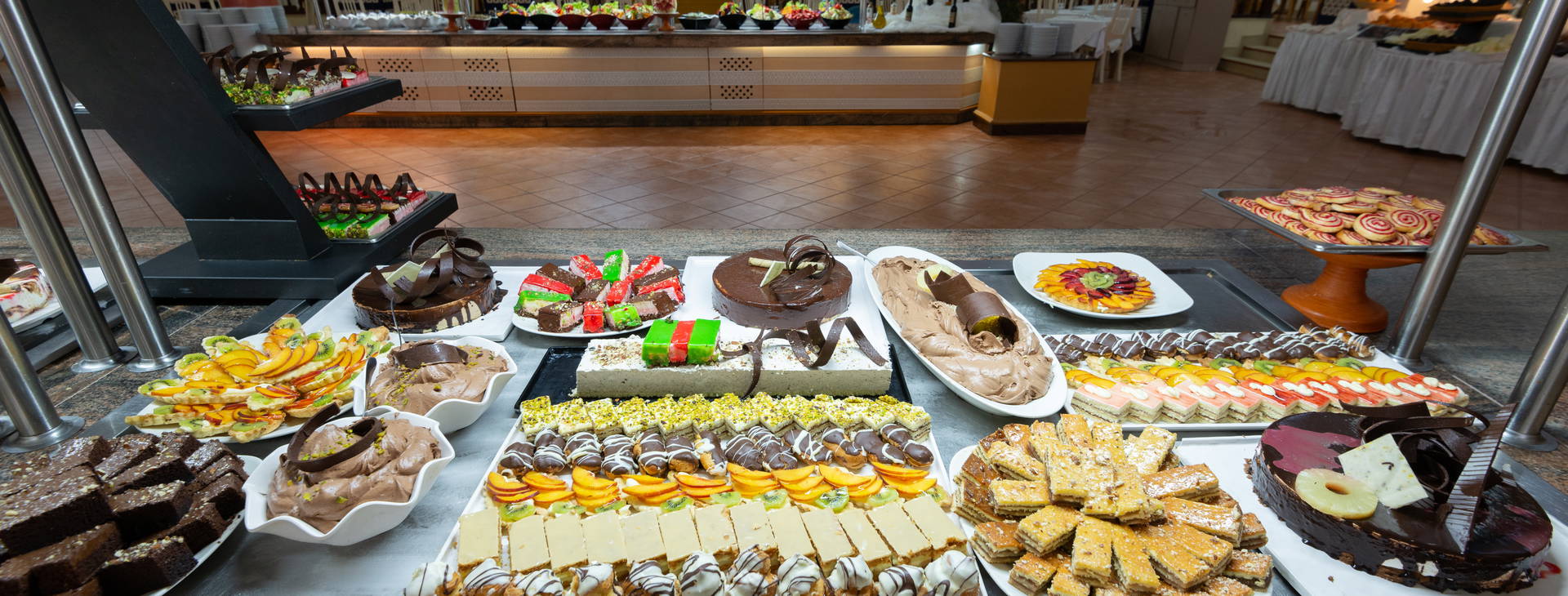 Raňajky (07:00-10:00), neskoré raňajky (10:00-11:00), obedy (12:30-14:00) a večere (18:30-21:00) formou bufetu a 2 večere počas pobytu v reštauráciách a la carte (nutná rezervácia vopred). Ľahké občerstvenie počas dňa: pizza, ovocie, koláče, sendviče (16:00-17:00). Nealkoholické a miestne alkoholické nápoje (10:00-24:00). Za poplatok: džúsy vylisované z čerstvého ovocia.