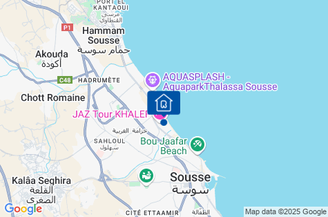 Hotel sa nachádza v meste Sousse (1,5 km od centra), v zálive Hammamet, asi 8 km od prístavu Port El Kantaoui, asi 20 km od letiska Monastir a asi 33 km od letiska Enfidhi. V tesnej blízkosti hotela sa nachádza množstvo obchodov a reštaurácií, ako aj obchodov so suvenírmi. Poznámka:Cena nezahŕňa miestnu turistickú daň vo výške 12 TND/osoba/deň. Maximálna turistická daň sa počíta za 15 po sebe nasledujúcich hotelových nocí aj pri dlhších pobytoch. Osoby mladšie ako 12 rokov sú od platenia turistickej dane oslobodené. Daň je povinná a platí sa priamo na recepcii pred ubytovaním klientov v hoteli.