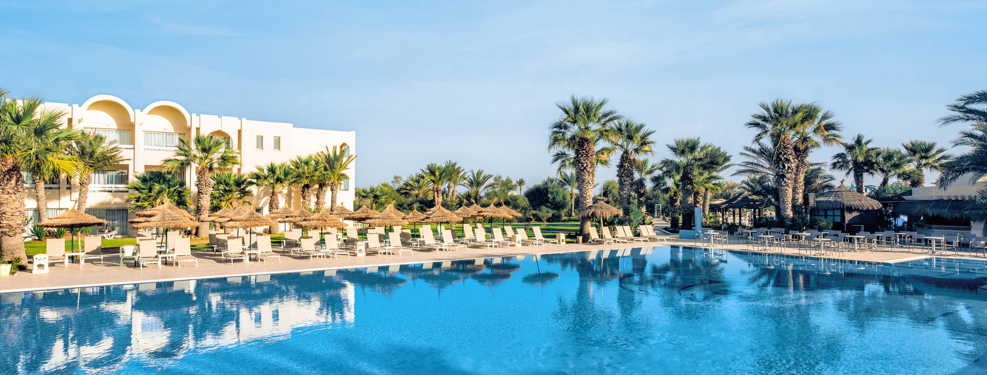 Hotel sa nachádza na pôvabnom ostrove, na ktorý poslal Homér Odyssea, aby si oddýchol po bitke s Trójanmi. Rezort udržiavaný vo veľmi útulnej a rodinnej atmosfére sa nachádza priamo na zlatistej pláži. Od letiska je vzdialený približne 30 km. Najbližšia dedinka Midoun s barmi, reštauráciami a obchodmi sa nachádza približne 6 km od hotela. Kúsok od hotela sa nachádza golfové ihrisko. POZNÁMKA!Cena nezahŕňa miestnu turistickú daň vo výške 3 TND/osoba/deň. Maximálna turistická daň sa počíta za 7 po sebe nasledujúcich hotelových nocí aj pri dlhších pobytoch. Osoby mladšie ako 12 rokov sú od platenia turistickej dane oslobodené. Daň je povinná a platí sa priamo na recepcii pred ubytovaním klientov v hoteli.