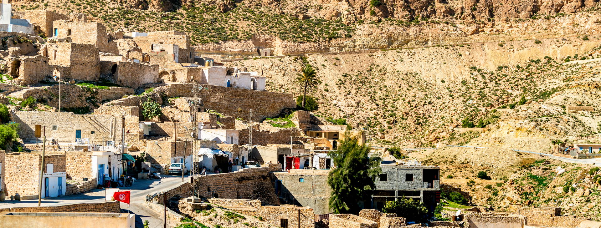 Po snídani transfer autem z Djerby do vesnice Tamezret. Exkurze do vesnice obývané domorodým obyvatelstvem žijícím v podzemních troglodytních domech vytesaných do skály. Navštívíme místní muzeum berberské kultury. Odtud se vydáme na pěší túru do městečka Stará Matmata (přibližně 5 hodin pěší chůze). Budeme cestovat přes kamenné vrcholky obklopené vyprahlou pouští po stezce "Velký Daharský přechod", která je věnována životu na okraji pouště. Cestou budeme míjet malé amazonské vesnice obklopené datlovými palmami a olivovými háji a starobylé opevněné sýpky. Přejezd do hotelu. Ubytování, večeře. Přenocování v hotelu v Matmatě nebo v Tamezretu.