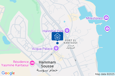 Hotel sa nachádza v rušnej turistickej štvrti Port El Kantaoui, asi 6 km od historickej mediny Sousse (dostupnej miestnym taxíkom za približne 8 TND alebo miestnym autobusom), asi 30 km od letiska Monastir a asi 35 km od letiska Enfidhi. Nachádza sa asi 300 m od krásneho jachtového prístavu. V bezprostrednej blízkosti hotela nájdete reštaurácie, krčmy, kaviarne, diskotéku a množstvo obchodov so suvenírmi. Hotel susedí so zábavným parkom Hannibal Park, ako aj s malým aquaparkom. POZNÁMKA!Cena nezahŕňa miestnu turistickú daň vo výške 3 TND/osoba/deň. Maximálna turistická daň sa počíta za 7 po sebe nasledujúcich hotelových nocí aj pri dlhších pobytoch. Osoby mladšie ako 12 rokov sú od platenia turistickej dane oslobodené. Daň je povinná a platí sa priamo na recepcii pred ubytovaním klientov v hoteli.