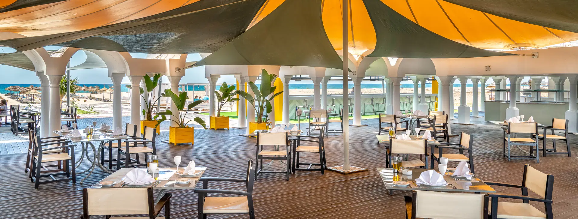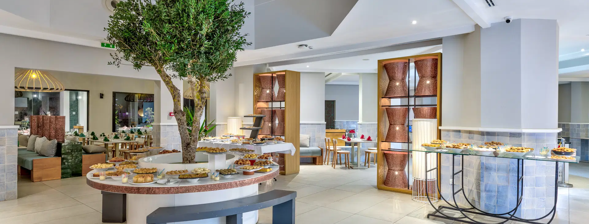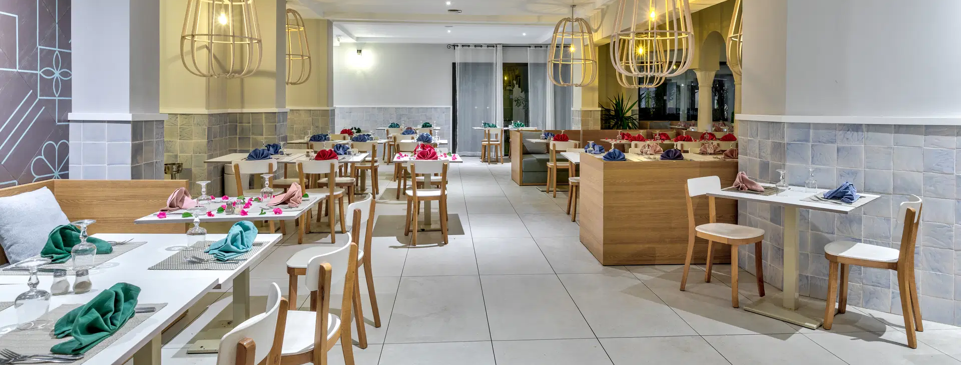 Raňajky, obedy a večere sa podávajú v hlavnej reštaurácii. Reštaurácie a la carte (za príplatok, nutná rezervácia vopred). Bary: pri bazéne (10:00-23:00), v lobby (120:00-24:00), maurská kaviareň (18:00-24:00, za príplatok). V baroch sú k dispozícii bezplatné miestne alkoholické a nealkoholické nápoje.