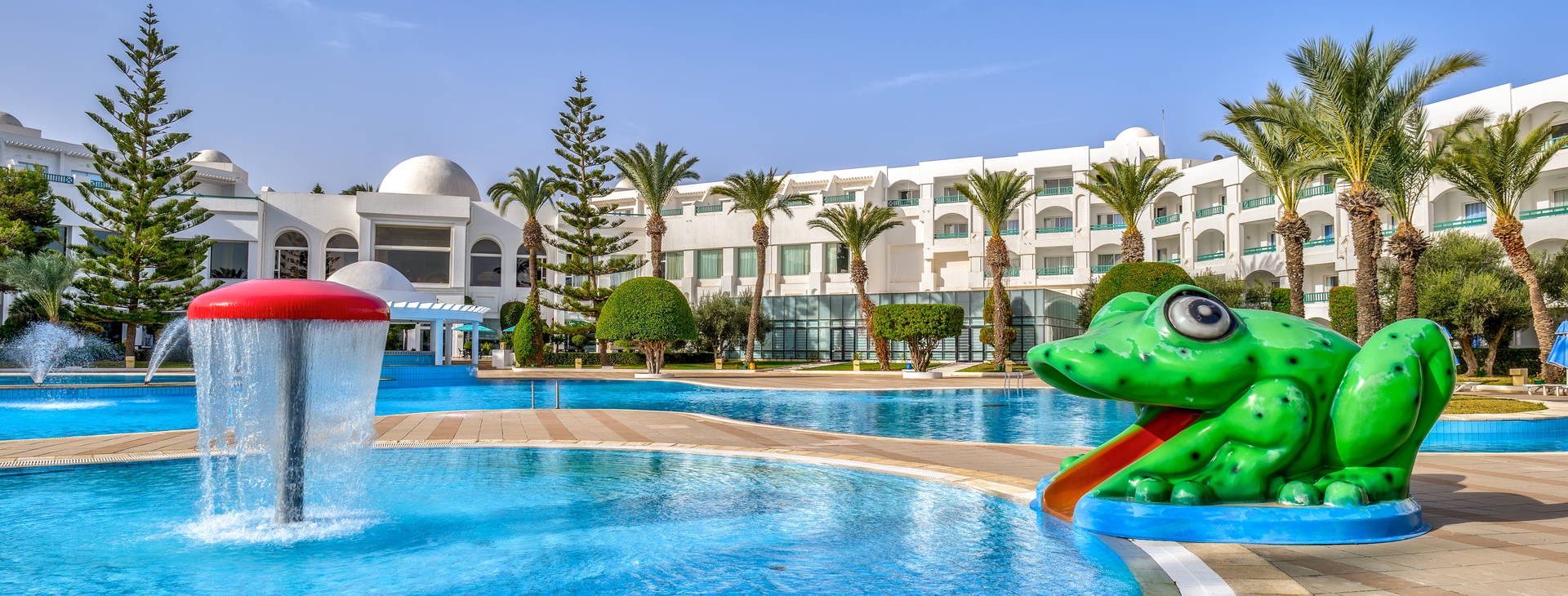 Hotel pozostáva zo 4-poschodovej hlavnej budovy a niekoľkých vedľajších budov a bol zrekonštruovaný v roku 2010. Recepcia 24 hodín, hlavná reštaurácia "Monastir" (tuniská a medzinárodná kuchyňa), a la carte reštaurácia "Layali El Andalous" (za poplatok), snack bar "Sfax", americký bar "Hammamet", lobby bar "Mahdia" (so živou hudbou), maurská kaviareň, kaviareň 24/7, veľký bazén (rozloha cca 1,5 km2), reštaurácia s výhľadom na more (za poplatok), reštaurácia s výhľadom na more (za poplatok). 1600 m2) (ležadlá a slnečníky pri bazéne - zdarma, uteráky na kauciu), krytý bazén (otvorený v zime), nočný klub "El Jem" s diskotékou, miniklub a detské ihrisko, zmenáreň, turistické informácie, kaderníctvo, herňa, slnečná terasa. Za poplatok mini nákupná pasáž, požičovňa áut, tenisové kurty, biliard, fitnes klub, najväčšie centrum thalassoterapie v Tunisku - "Vital Thalgo Centre" (sauna, masáže, vírivka, turecký kúpeľ, bazén s morskou vodou), minigolf, 9-jamkové golfové ihrisko.