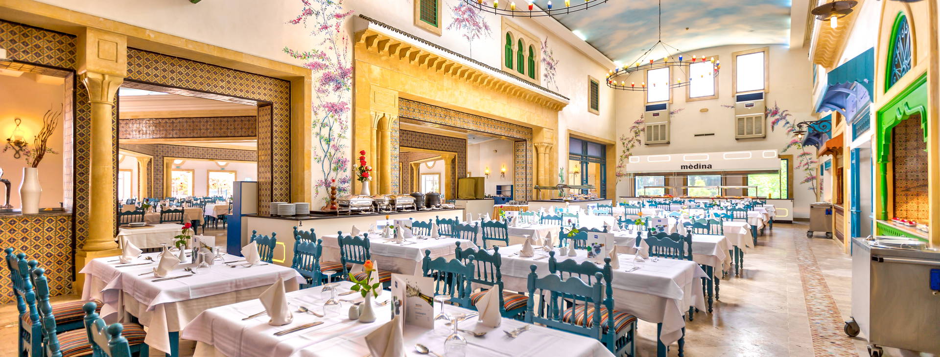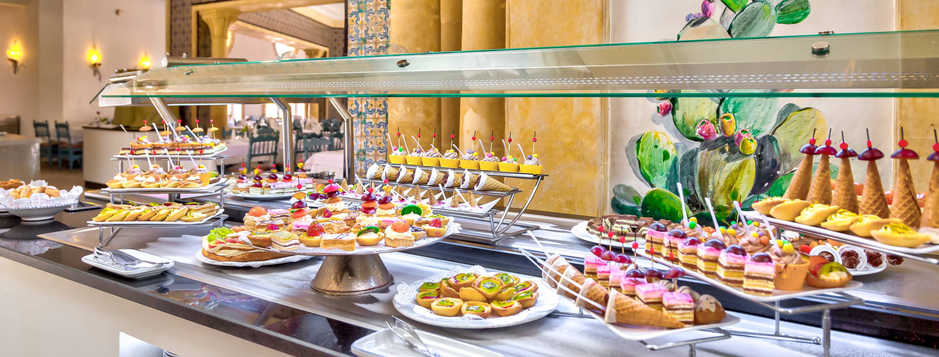 V hlavnej reštaurácii: raňajky (07:00-10:00), obed (12:30-14:30), večera (18:30-21:00) - formou bufetu, miestna a medzinárodná kuchyňa. Neskoré raňajky (sladké) sa podávajú v Shark bare od 10:00 do 24:00. Občerstvenie je k dispozícii v snack bare od 15:00 do 17:00 (sendviče, mini pizza, palacinky, ovocie, káva, mlieko, čaj).
