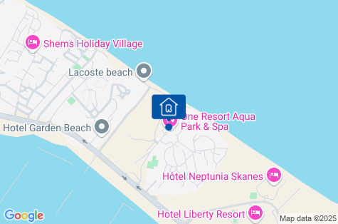 Vysokokvalitný hotel sa nachádza v pokojnej oblasti, priamo na piesočnatej a širokej pláži s pozvoľným vstupom do mora. Objekt pozostáva z hlavnej budovy a bungalovov zasadených do tropickej záhrady a rozprestiera sa na rozsiahlej ploche 15 hektárov. Do centra mesta Monastir je to približne 10 km a do centra mesta Sousse približne 12 km.