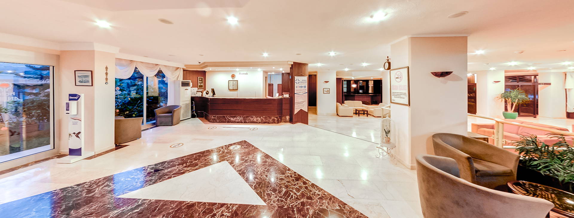 Hotel pozostáva z hlavnej budovy. Recepcia s nepretržitou prevádzkou, výťah, vstupná hala, hlavná reštaurácia, čiastočne otvorená, bez a'la carte reštaurácií, lobby bar, bar pri bazéne. Bazén, detské brodítko, ležadlá, slnečníky a matrace pri bazéne k dispozícii zdarma.
