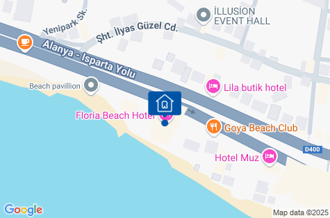 Moderný hotel sa nachádza priamo pri mori s priamym prístupom na známu Kleopatrinú pláž. Len asi 3 km od centra Alanye s krásnym prístavom, množstvom barov, reštaurácií, bazárom a obchodmi. Najbližšia zastávka miestnej dopravy sa nachádza priamo pri hoteli. Približne. 100 m od hotela sa nachádza promenáda, po ktorej sa dostanete do centra Alanye.