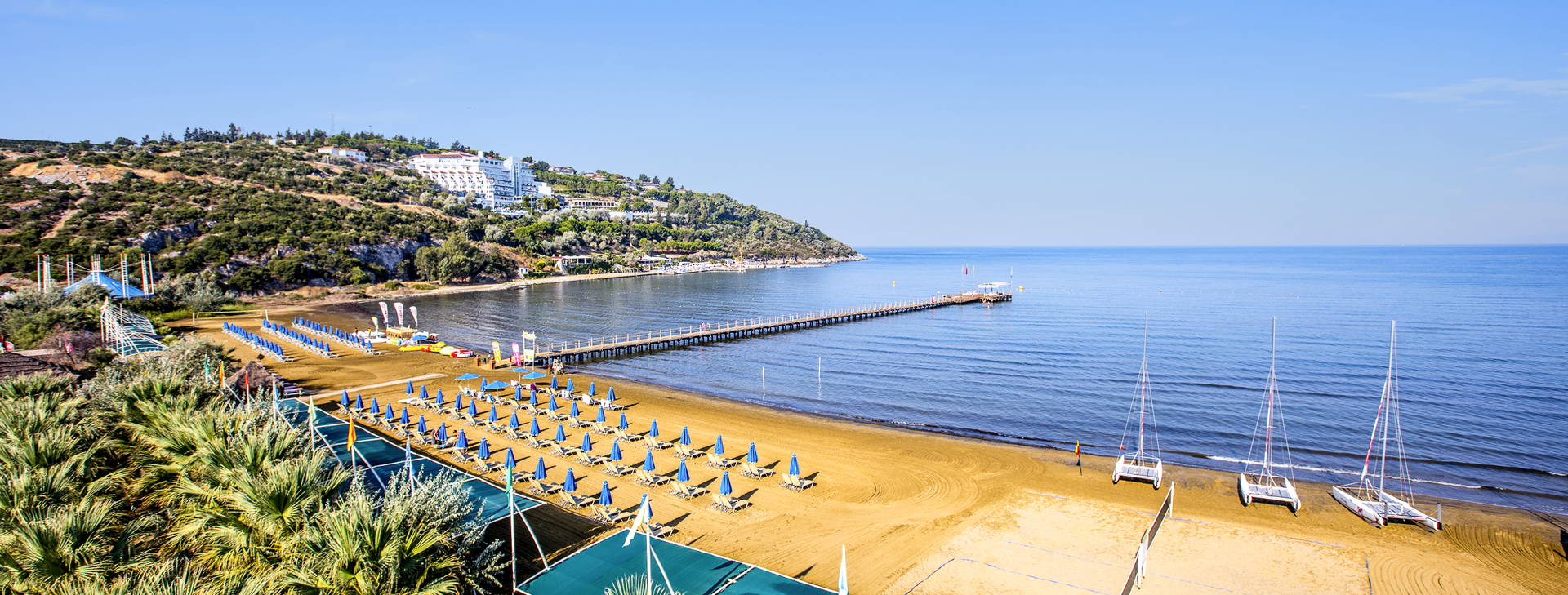 Rozľahlý rezort bohatý na zábavu sa nachádza približne 9 km od centra Kusadasi, 9 km od mesta Selcuk a 135 km od letiska Bodrum. Nachádza sa na mimoriadne veľkej ploche a ponúka zábavu pre rodiny s deťmi, páry aj mladých ľudí. Skladá sa z dvoch častí World Hotel a Club Hotel. Nachádza sa priamo na krásnej širokej piesočnatej pláži s pozvoľným vstupom do mora (ležadlá a slnečníky zdarma), avšak vzhľadom na veľkú rozlohu a odlišné umiestnenie izieb sa vzdialenosť od pláže môže líšiť.