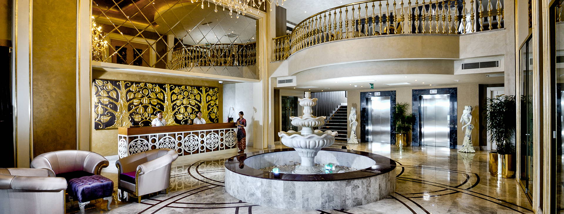 Štyrihodinová recepcia, lobby, hlavná reštaurácia, 11 a'la carte reštaurácií vrátane talianskej, BBQ, orientálnej, ázijskej (nutná rezervácia vopred), 12 barov vrátane 24-hodinového lobby baru, plážového baru, športového baru, Her Be baru. Okrem toho 4 vonkajšie bazény nepravidelných tvarov, bazén so šmykľavkami, detské brodítko a vnútorné bazény. Za príplatok: lekár, práčovňa, fotograf, kaderník, butiky a obchody.