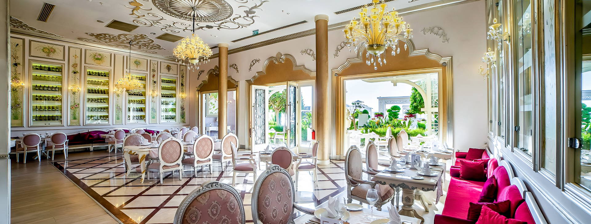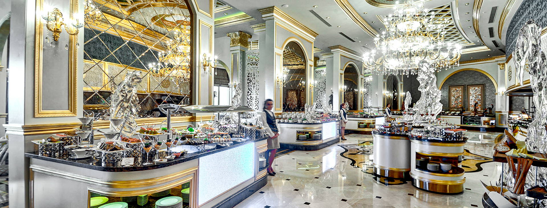Premium All Inclusive: raňajky (07:00-10:00), neskoré raňajky (10:00-11:00), obedy (12:30-14:30), večere (19:00-22:00) podávané formou bohatého bufetu v hlavnej reštaurácii. Nočné občerstvenie (23:00-07:00) v a'la carte reštaurácii. Občerstvenie, zmrzlina, ovocie a sladkosti podávané v rôznych baroch počas celého dňa. Nealkoholické nápoje, miestne alkoholické nápoje a špičkové alkoholické nápoje k dispozícii v športovom bare (nealkoholické nápoje, miestne alkoholické nápoje a niektoré importované nápoje v ostatných baroch počas otváracích hodín).
