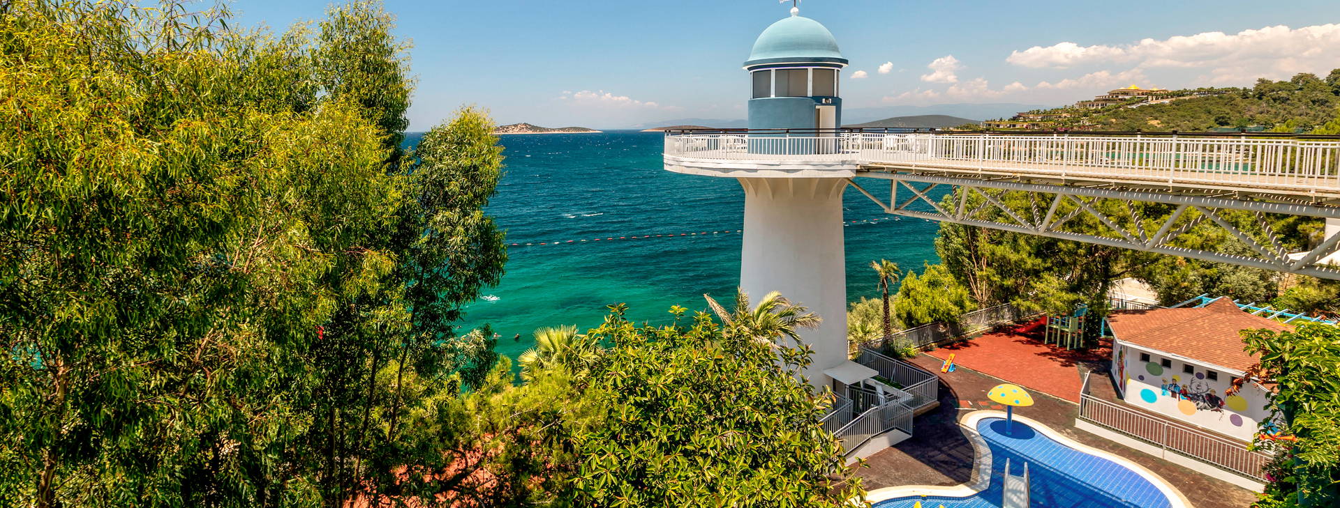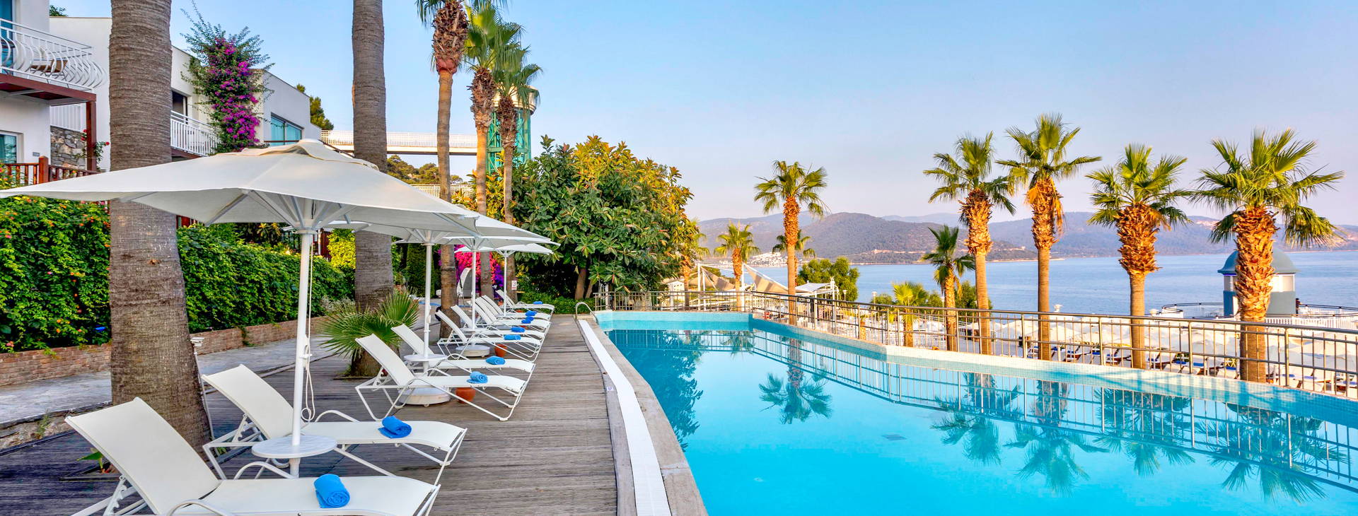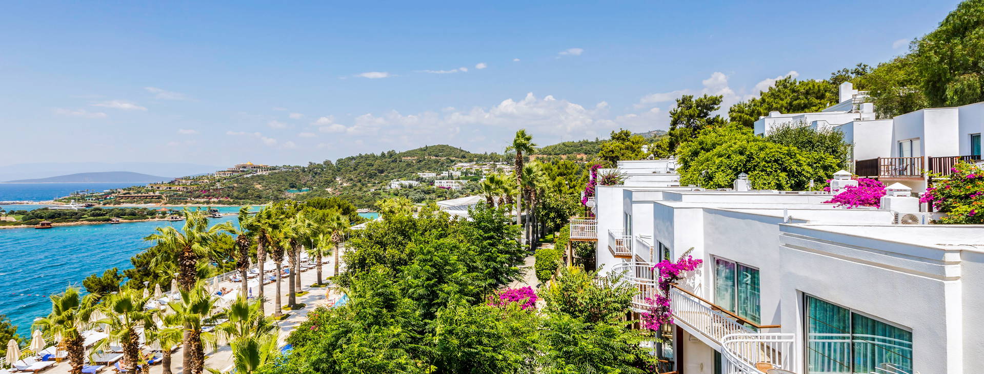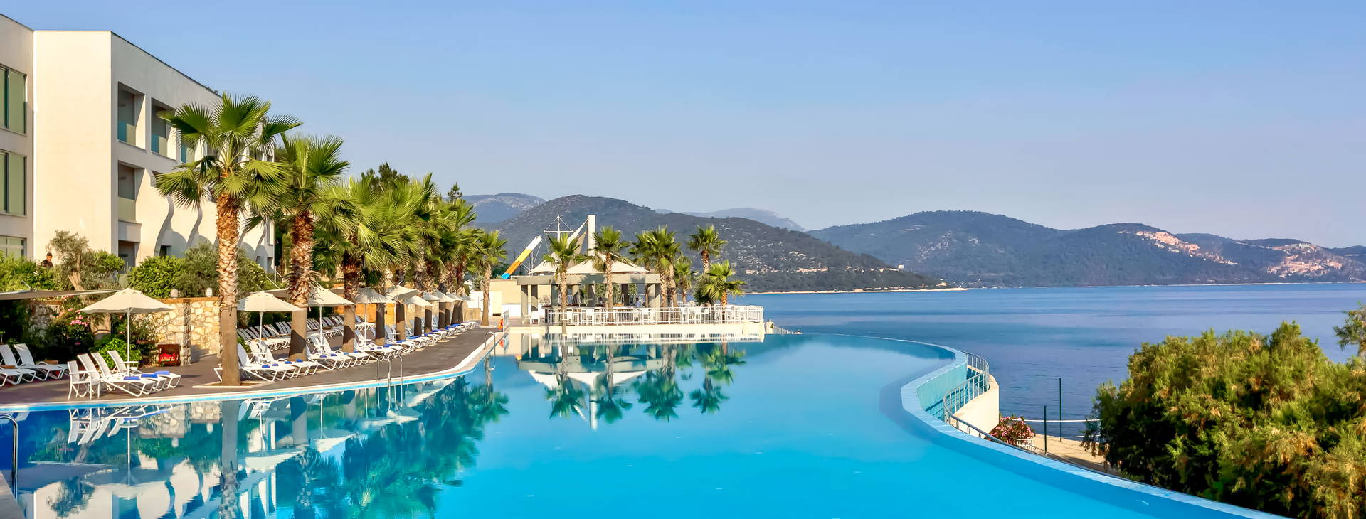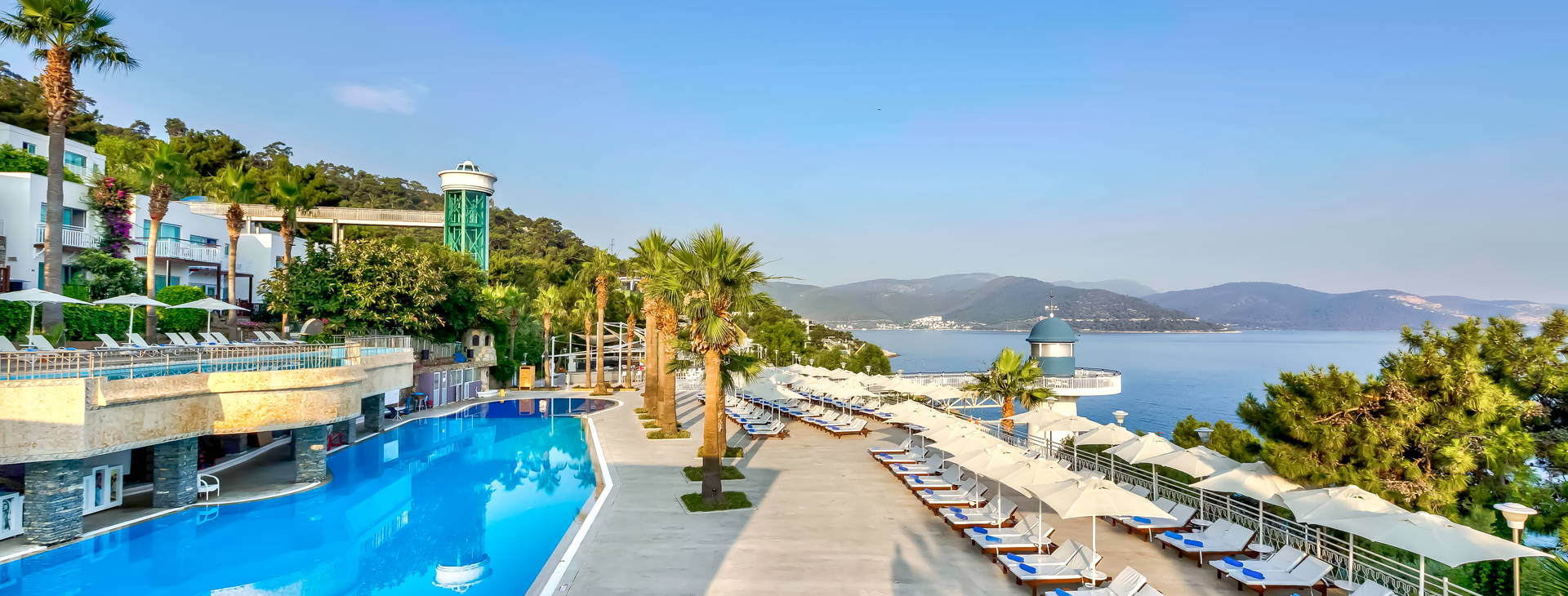 Kaskádový hotel sa nachádza v pokojnej oblasti, do centra so širokou ponukou reštaurácií, barov a obchodov je to cca 9 km, na letisko Bodrum cca 30 km.