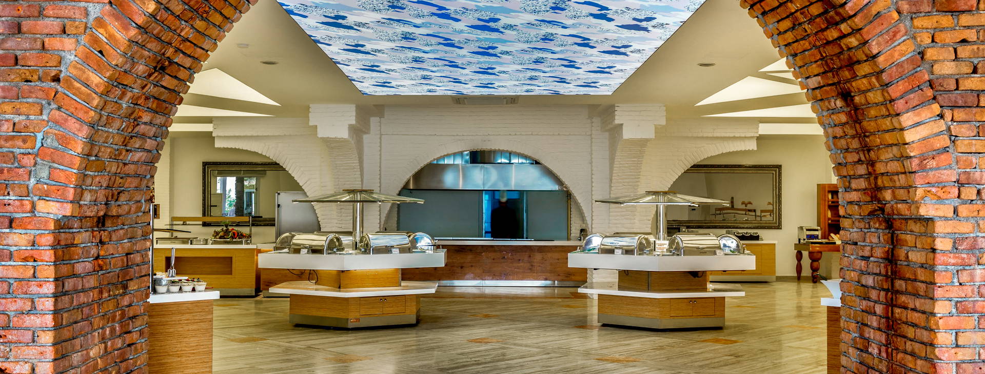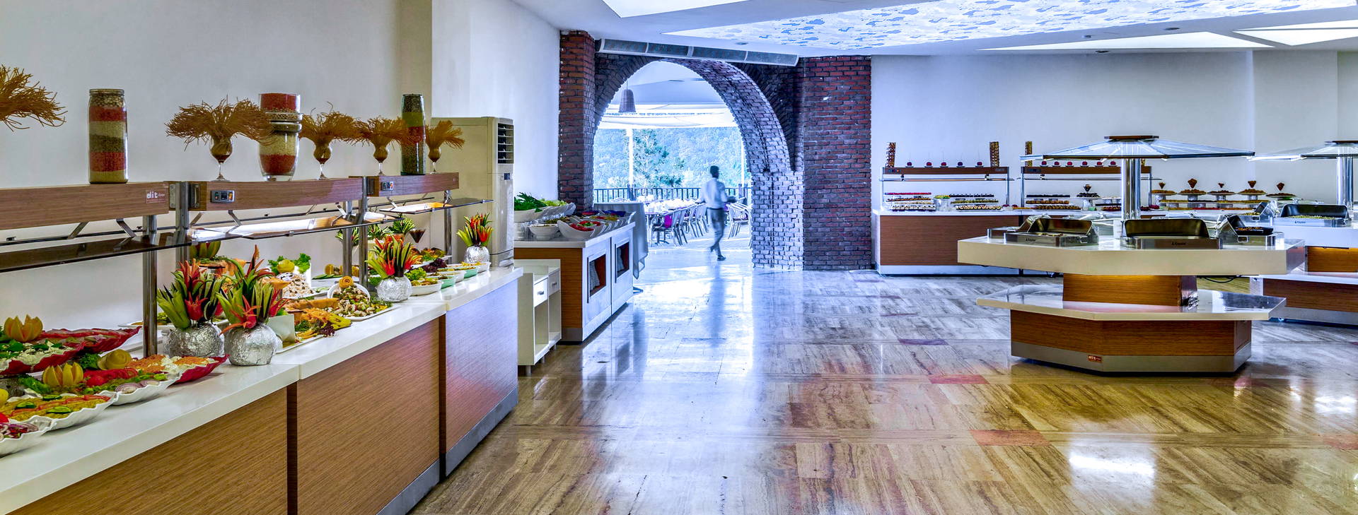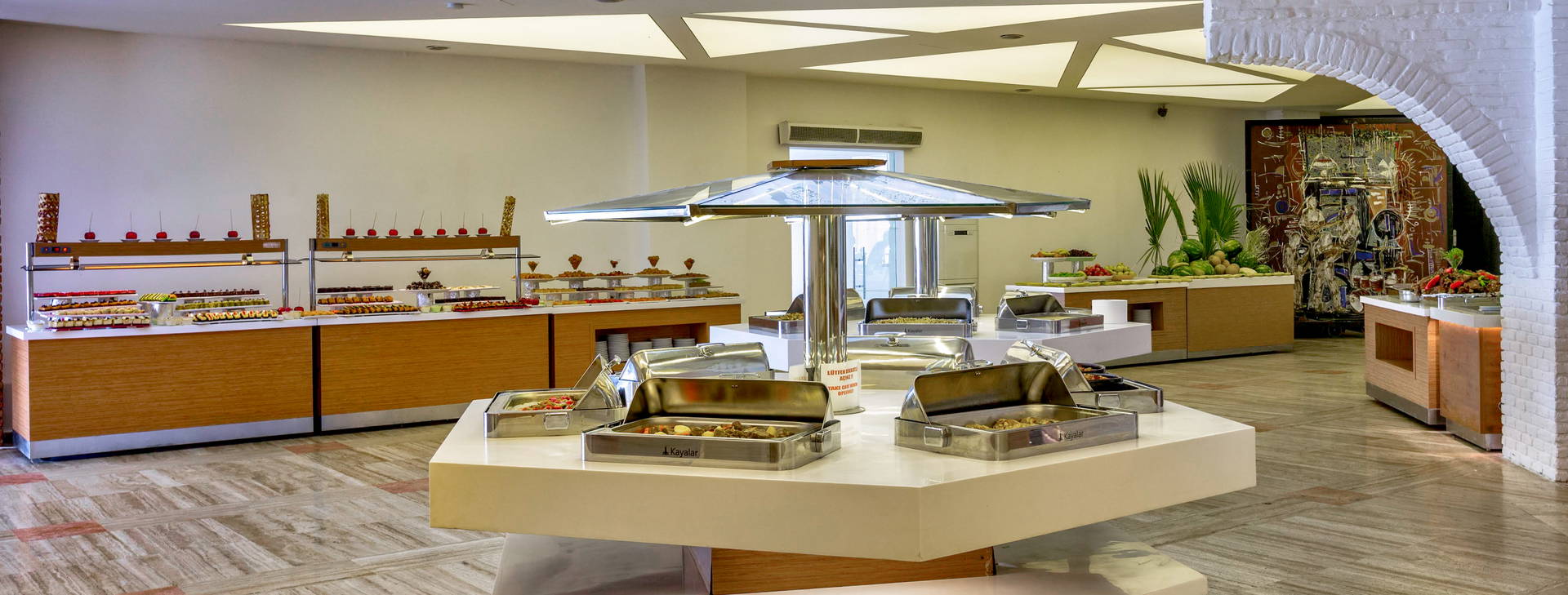 Ultra All Inclusive: raňajky (07:00-10:30), obedy (12:30-14:00) a večere (19:00-21:30) podávané formou pestrého bufetu v hlavnej reštaurácii, občerstvenie počas dňa (12:00-17:00), káva, čaj, koláče a zmrzlina (11:00-19:00), nočné občerstvenie (24:00-02:00). Miestne nealkoholické a alkoholické nápoje 24 h vo vybranom bare, v ostatných počas otváracích hodín. Za poplatok: iné importované nápoje.