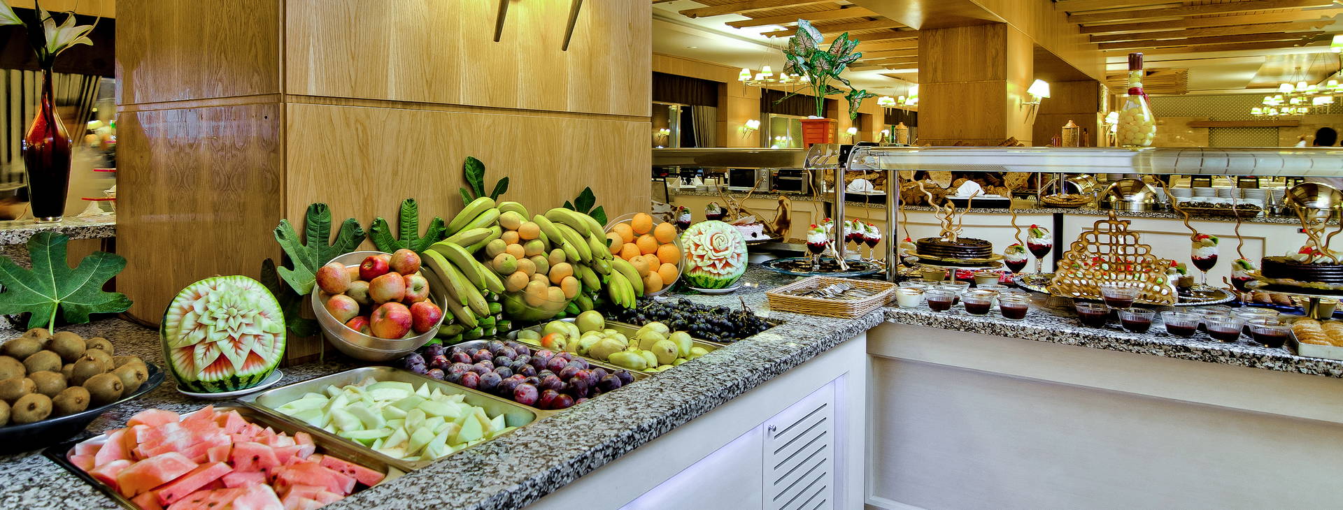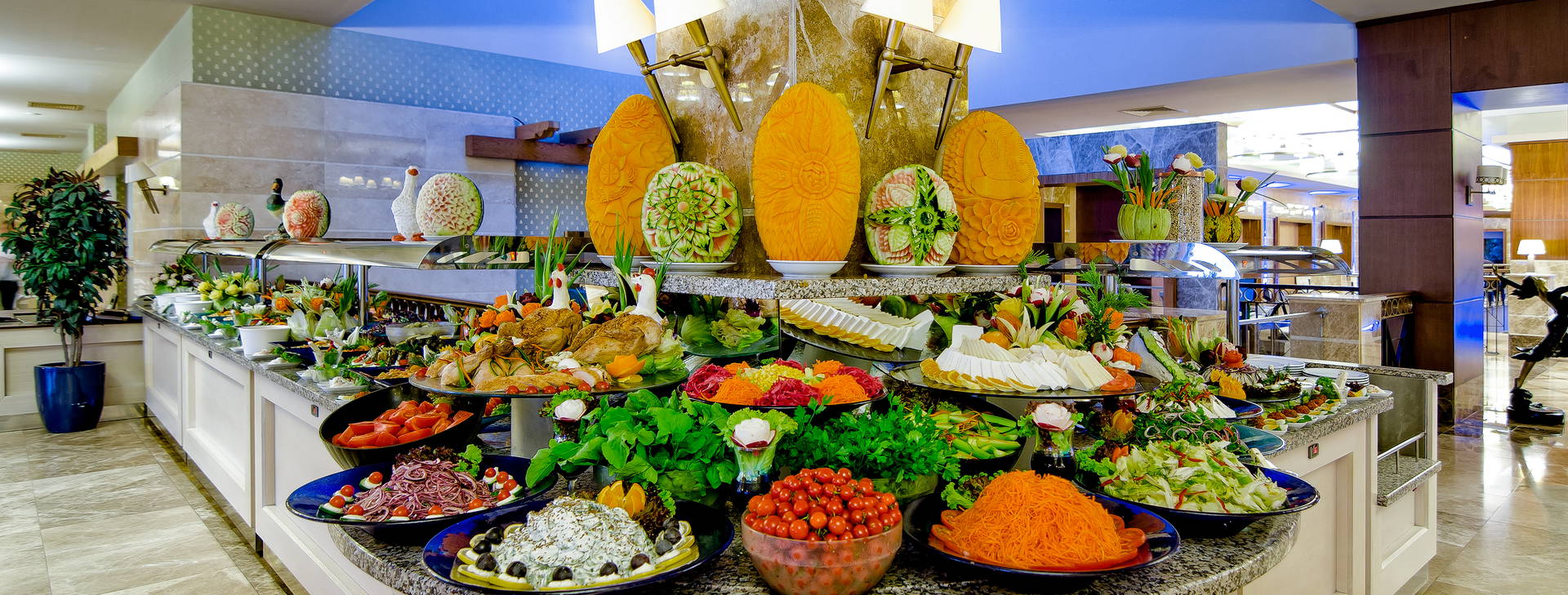 All Inclusive: raňajky (07:00-10:00), obed (12:30-14:00), večera (19:00-21:00). Občerstvenie počas dňa (12:30-16:00), zmrzlina (13:00-17:00), káva, čaj (17:00-18:00), nočné občerstvenie (23:00-00:00). Miestne nealkoholické a alkoholické nápoje k dispozícii od 10:00-24:00. Za poplatok: dovážané nealkoholické a alkoholické nápoje, čerstvo vylisované šťavy.