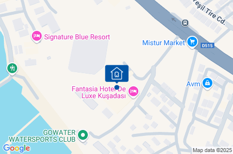 Elegantný hotel sa nachádza v pomerne pokojnej oblasti, približne 5 km od centra Kusadasi s množstvom barov, reštaurácií, obchodov a klubov. Približne. 25 km od starovekého Efezu, cca 130 km od letiska Bodrum-Milas.