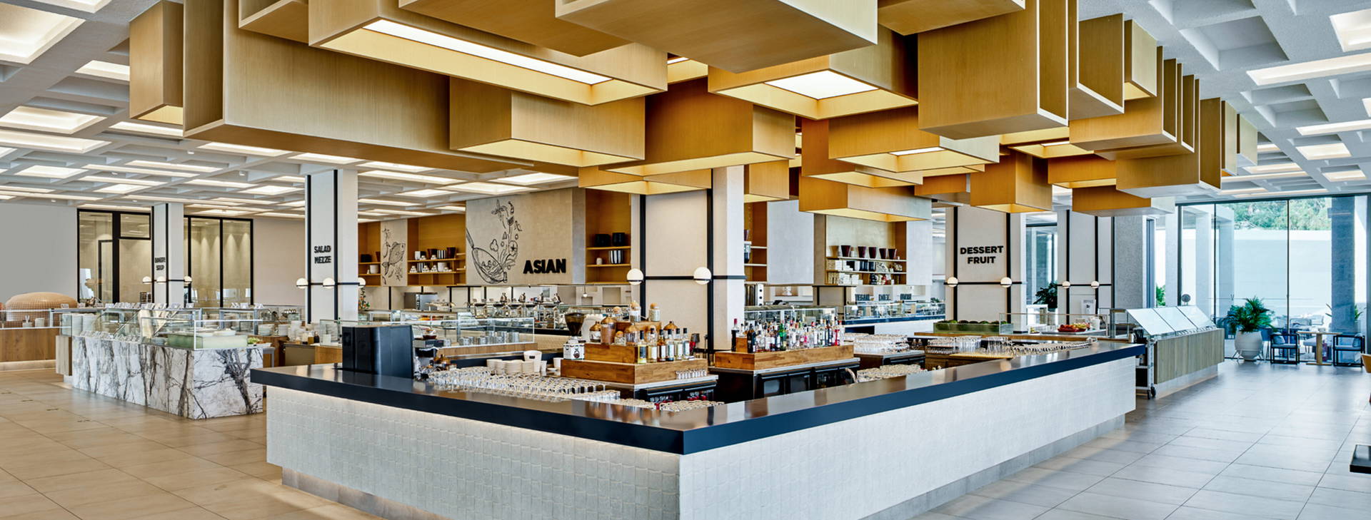 Skladba Ultra All Inclusive: raňajky (07:00-11:00), obed (12:30-14:30), večera (19:00-21:30) podávané formou bohatého bufetu v hlavnej reštaurácii. Občerstvenie, zmrzlina a sladkosti podávané v rôznych reštauráciách počas celého dňa. Nealkoholické nápoje, miestne alkoholické nápoje a niektoré importované nápoje k dispozícii 24 h Cusine bar (v ostatných baroch počas otváracích hodín).