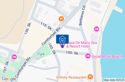 Hotel s originálnou architektúrou sa nachádza v známom turistickom letovisku Marmaris, asi 5 km od zábavného centra s množstvom barov, reštaurácií, obchodov a klubov. Na letisko Dalaman je to približne 90 km. Pred hotelom sa nachádza zastávka miestnej dopravy do centra Marmarisu.