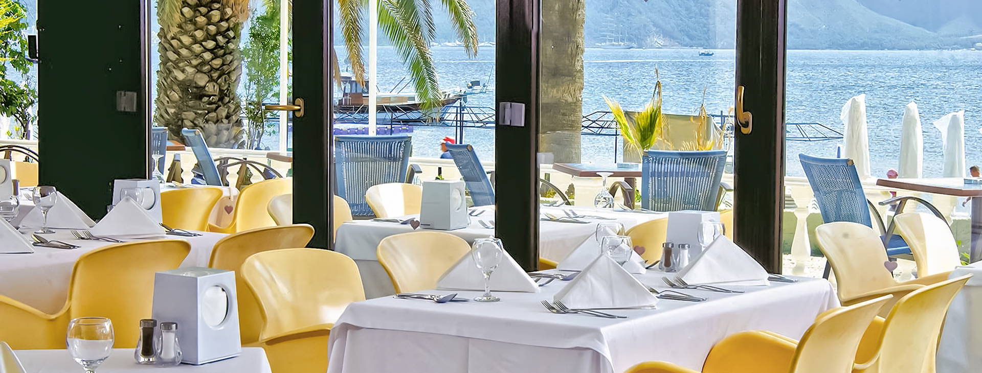 Ultra All Inclusive: raňajky (07:00-10:00), neskoré raňajky (10:00-10:30), obed (12:30-14:30), večera (19:00-21:30) formou pestrého bufetu v hlavnej reštaurácii. Občerstvenie počas dňa (12:00-16:00), gozleme palacinky, káva, čaj, večerné občerstvenie (23:00-24:00). Okrem toho miestne nealkoholické a alkoholické nápoje (10:00-24:00), nápoje podávané po 24:00, importované nealkoholické a alkoholické nápoje, značkové vína, čerstvé ovocné šťavy a zmrzlina.