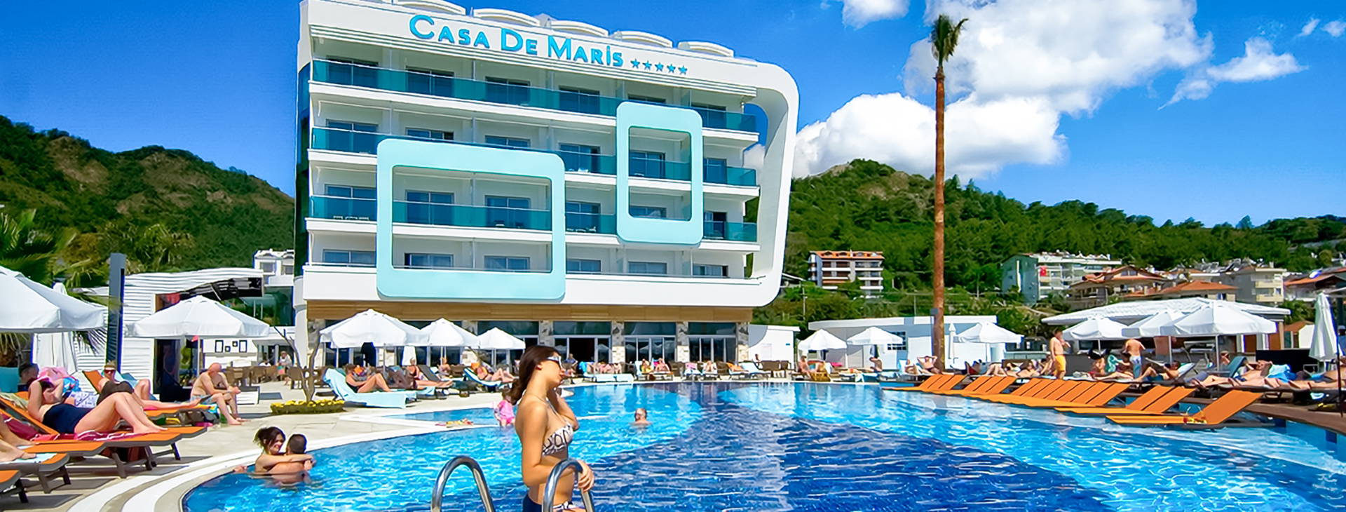 Elegantný hotel so zaujímavou architektúrou a veľmi dobrými službami. Jeho nespornou výhodou je vynikajúca poloha, na jednej strane pri pláži a na druhej strane v blízkosti širokej ponuky zábavy v centre Marmarisu. Odporúčame ho najmä mladomanželom na svadobnej ceste, ľuďom s mladým duchom, tým, ktorí radi relaxujú v živých letoviskách, a rodinám so staršími deťmi.