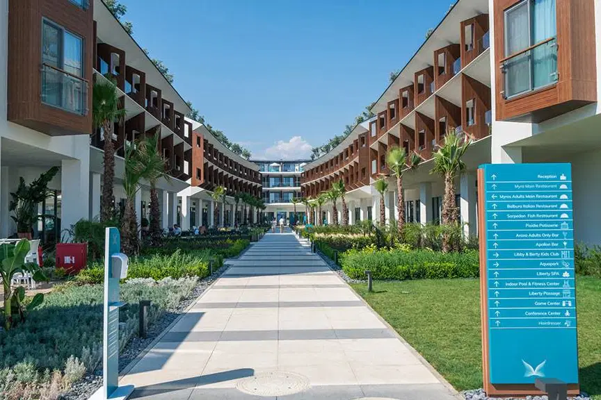 Recepcia, 10 výťahov, hlavná reštaurácia Myra, hlavná reštaurácia Myros pre osoby staršie ako 16 rokov, 3 a'la carte reštaurácie: talianska a rybia a morské plody (za príplatok cca 25 EUR/osoba, nutná rezervácia vopred), ázijská platená cca. 40 EUR/osoba, cukráreň, reštaurácia s občerstvením. 8 barov, okrem iných: lobby bar, Araxa bar, bar pri bazéne, Apollon bar. K dispozícii hosťom: hotelový bar, hotelová reštaurácia, hotelový bar: 2 hlavné bazény, detský bazén, 6 tobogánov a bazény rozmiestnené pri ostatných budovách v záhrade. Ležadlá, slnečníky a osušky sú k dispozícii bez príplatku. Za príplatok: lekár, izbová služba, služba opatrovania detí, práčovňa, obchody vrátane klenotníctva, obchodu so suvenírmi, požičovňa áut, fotograf, kaderník.