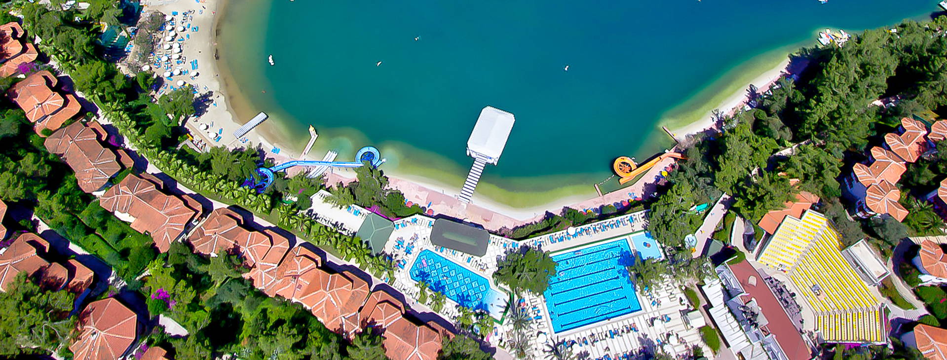 Hotel sa nachádza na malom polostrove v rozľahlej oblasti uprostred nádhernej stredomorskej vegetácie. Približne. 4 km od centra mesta Fethiye s množstvom obchodov, barov a reštaurácií (možnosť využiť vodný taxík z hotela do Fethiye za príplatok cca 100 TL/5 EUR) a cca 20 km od turistického mesta Oludeniz. Na letisko Dalaman je to približne 60 km.