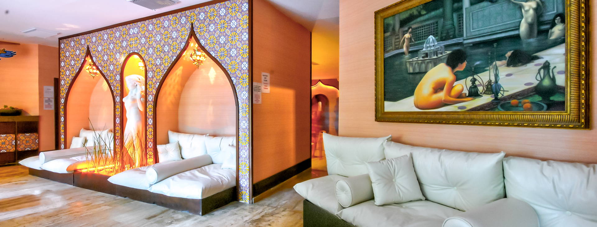 Hodinová recepcia, vstupná hala, konferenčná miestnosť, hlavná reštaurácia Moonlight, 3 reštaurácie a'la carte (jedlá z Ďalekého východu, ryby a talianska kuchyňa; nutná rezervácia vopred, príplatok cca 20 EUR/osoba/večera), 11 barov vrátane: plážového baru, lobby baru. Taktiež: 3 vonkajšie bazény s oddelenou detskou časťou, vnútorný bazén. Za poplatok: kaderníctvo, lekárska starostlivosť, fotograf, požičovňa áut, obchody so suvenírmi, klenotníctvo, práčovňa.