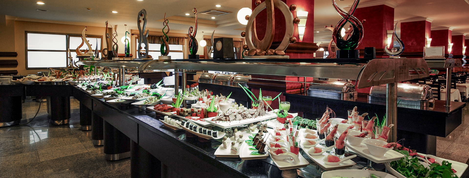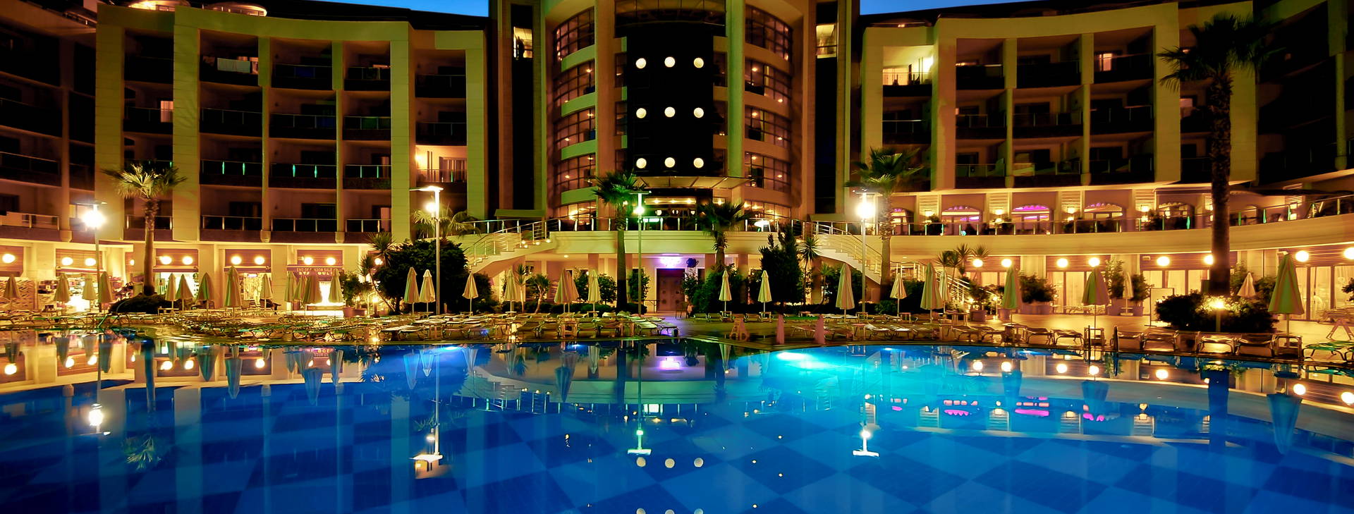24-hodinová recepcia, hlavná reštaurácia, a'la carte reštaurácia s orientálnou kuchyňou a morskými plodmi, 4 bary: lobby, snack, terasa a disco bar. Hlavný bazén, bazén so šmykľavkami (otvorený 10:00-12:00 a 14:00-16:00), detský bazén, krytý bazén s oddeleným detským bazénom. Osušky, ležadlá a slnečníky pri bazéne zdarma. Za poplatok: izbová služba, lekár, kaderník, trh. Služba opatrovania detí na požiadanie a za poplatok.