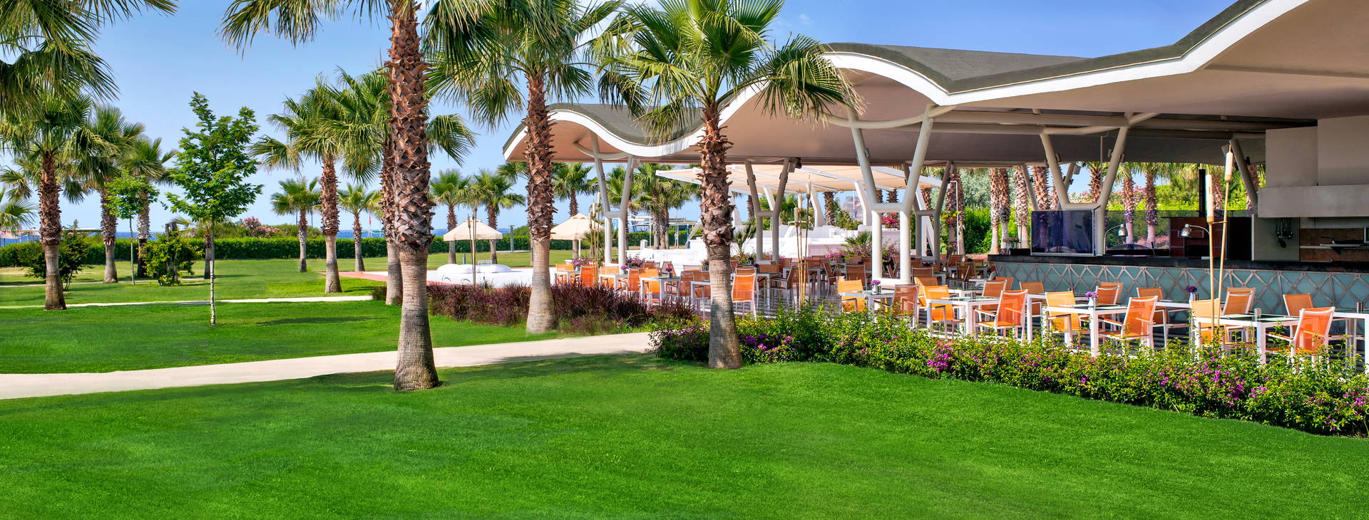 Hodinová recepcia, priestranná vstupná hala, miniknižnica, hlavná reštaurácia, 5 a'la carte reštaurácií vrátane: čínskej, talianskej, tureckej, indickej (za príplatok a po predchádzajúcej rezervácii na recepcii), 9 barov vrátane 3 s občerstvením. Okrem toho: 4 vonkajšie bazény, 3 vnútorné bazény (otvorené do polovice mája a od októbra) a 2 detské bazény. Za príplatok: požičovňa áut, fotograf, konferenčné miestnosti.
