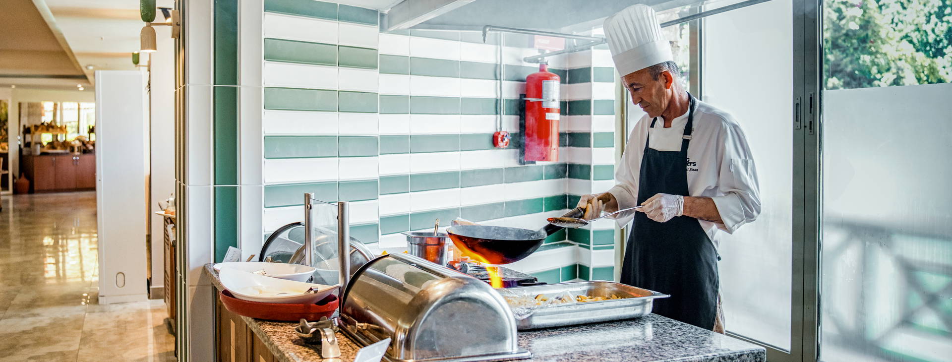 All inclusive: raňajky (07:30-10:00), neskoré raňajky (10:00-10:30), obed (12:30-14:00), večera (19:00-21:30) formou bufetu. Ďalej: počas dňa občerstvenie (12:00-16:00), zmrzlina (15:00-16:00), prestávka na kávu (16:30-17:30), miestne nealkoholické a alkoholické nápoje od 10:00-01:00, nočné občerstvenie (24:00-001:00). Ostatné nealkoholické a alkoholické nápoje za príplatok.