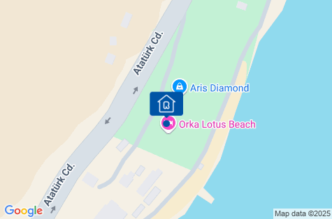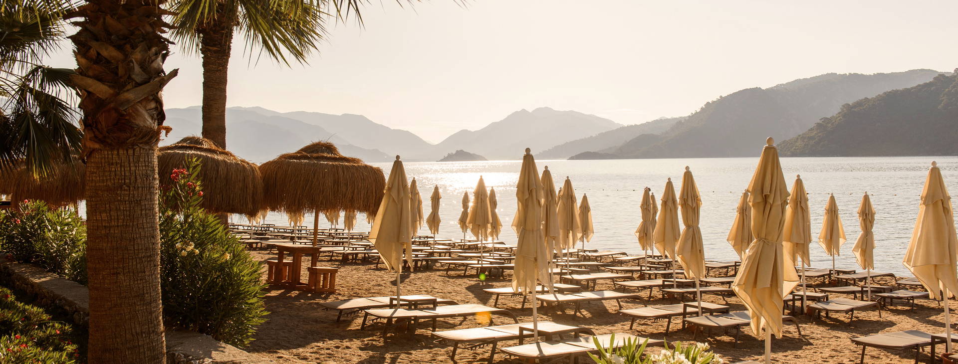 .Piesočnatá súkromná pláž dlhá približne 650 m. Od hotela ju oddeľuje pobrežná promenáda spájajúca Marmaris a Icmeler. Ležadlá, matrace, slnečníky a osušky na pláži zdarma.