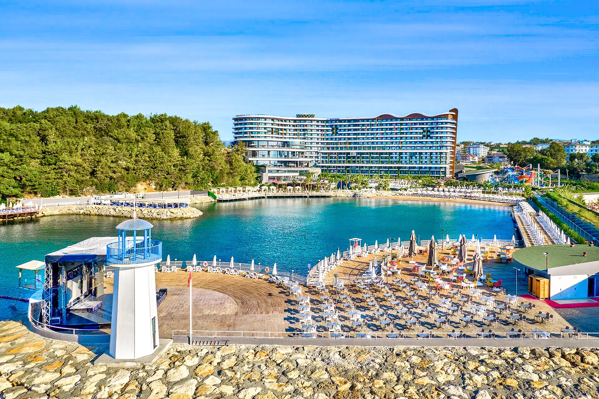 .Hodinová recepcia, priestranná vstupná hala, 6 výťahov, hlavná reštaurácia, 5 reštaurácií a'la carte (turecká, talianska, východná kuchyňa, morské plody a ryby), 3 bary s občerstvením: Food Court, Fast Corner a Ocean Pier, cukráreň Emerald Patisserie, turecká palacinková reštaurácia Gözleme House, 5 barov: vrátane v hale, pri bazéne a na móle, 3 vonkajšie bazény (jeden len pre dospelých), aquapark (vek 7+), mini aquapark pre deti (vek 4+), detské brodisko, vnútorný bazén a detské brodítko. Okrem toho je za príplatok k dispozícii práčovňa, stráženie detí, požičovňa áut, kaderníctvo a obchody.