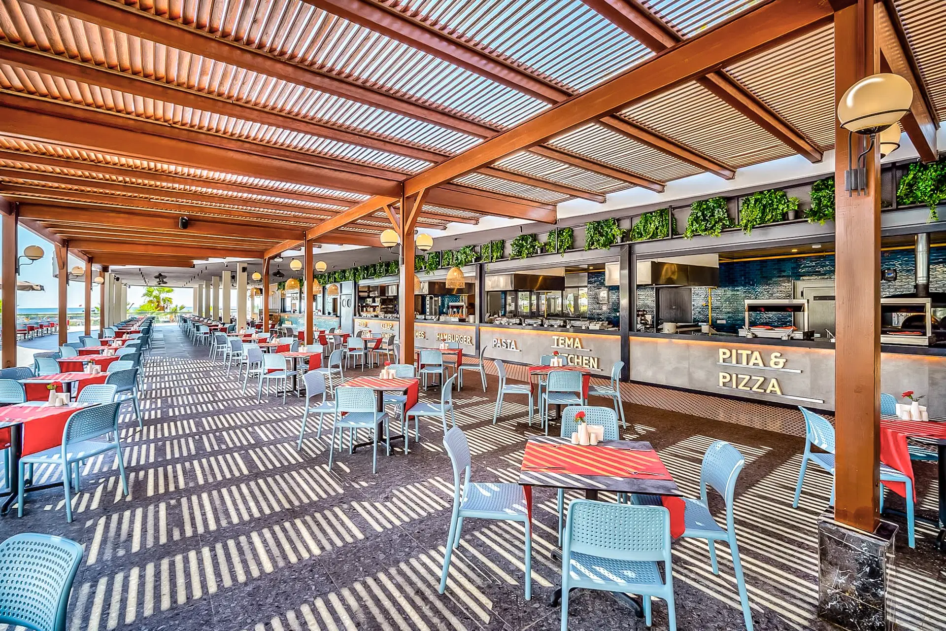 Ultra All Inclusive: raňajky (07:00-10:00), neskoré raňajky (10:00-11:00), obedy (12:30-14:00), večere (18:30-21:00) podávané formou bohatého bufetu v hlavnej reštaurácii, nočné občerstvenie (01:00-07:00) formou bufetu v reštaurácii Bistro, občerstvenie v reštauráciách: Food Court (11:00-18:30), Fast Corner (13:00-16:00) a Ocean Pier (13:00-16:00), turecké palacinky (10:00-15:30), sladkosti (13:00-23:00) a miestny alkohol, vybraný importovaný alkohol a nealkoholické nápoje v lobby bare Infinity 24 hodín, v ostatných baroch počas otváracích hodín. Okrem toho možnosť využiť a'la carte reštauráciu raz za pobyt bezplatne.