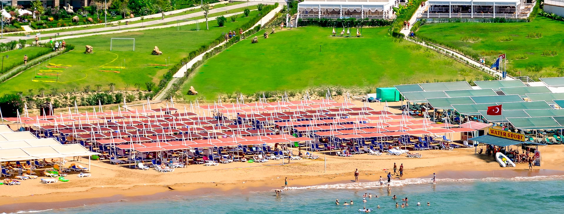 Piesočnatá súkromná pláž vzdialená približne 100 m od hotela s pozvoľným vstupom do mora. Plážové vybavenie (uteráky, slnečníky, ležadlá) je zahrnuté v cene.