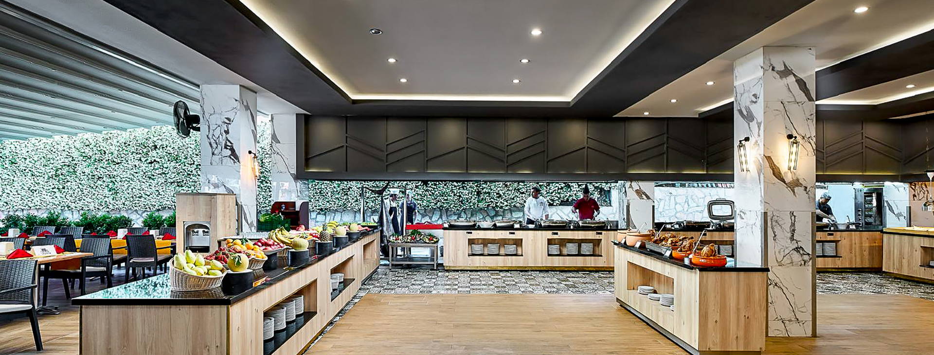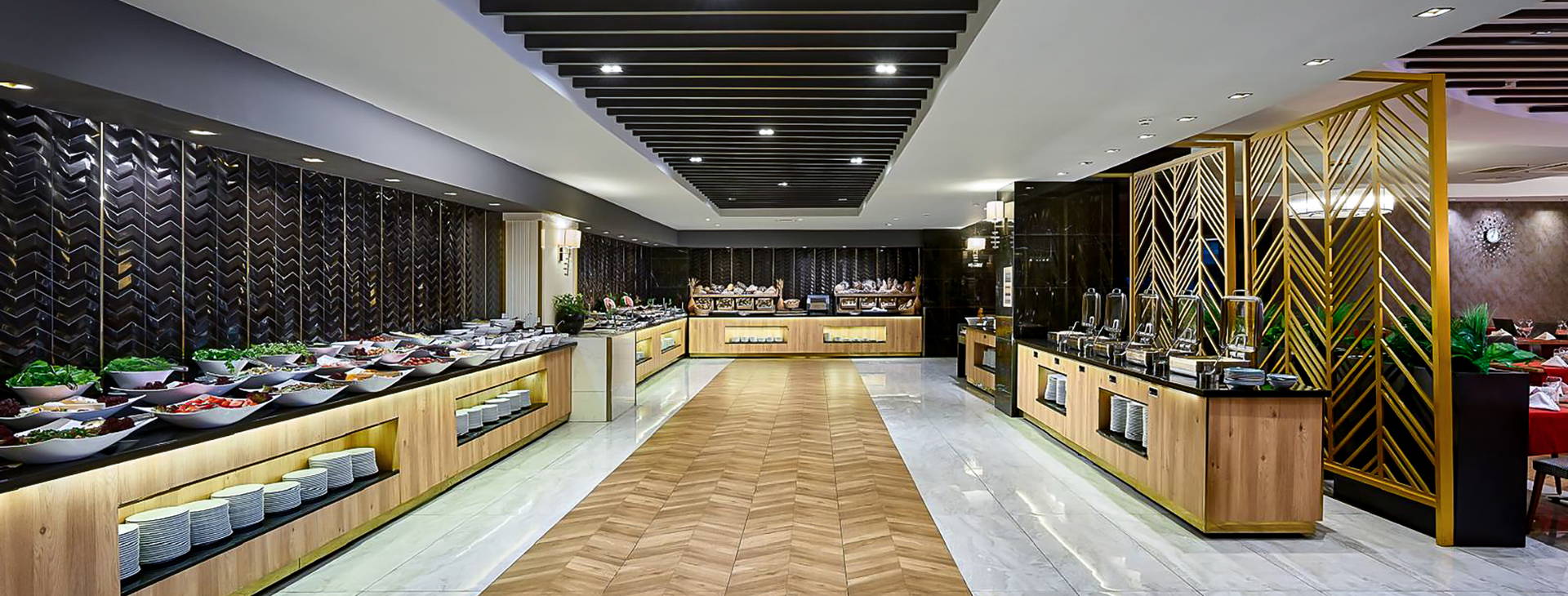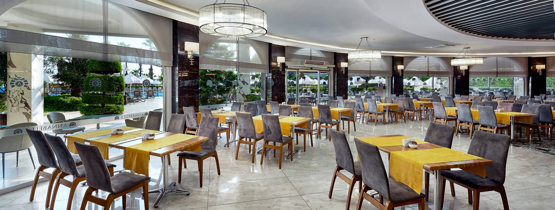 .All Inclusive: raňajky (07:00-10:00), neskoré raňajky (10:00-10:30), obed (12:30-14:00), večera (19:00-21:00) podávaná formou bohatého bufetu v hlavnej reštaurácii, nočná polievka (23:00-00:00). Miestne alkoholické a nealkoholické nápoje v lobby bare (10:00-00:00). Okrem toho v hoteli Annabella Diamond: občerstvenie (12:00-16:00), sladkosti a zmrzlina (11:00-15:00) v Snack bare a miestne alkoholické a nealkoholické nápoje v plážovom bare (10:00-00:00).