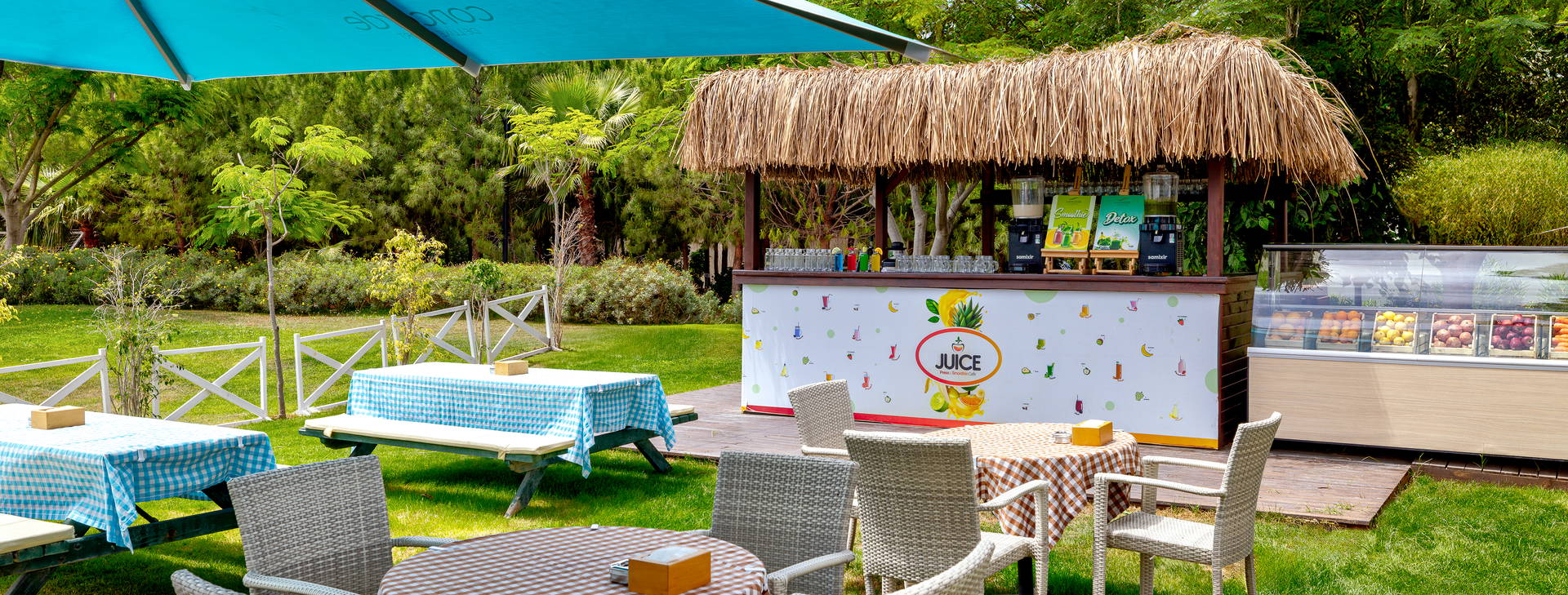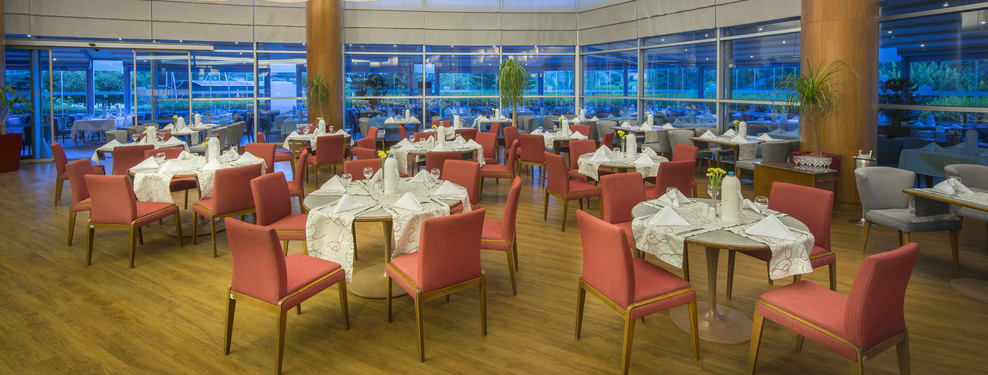 All Inclusive: raňajky (07:00-10:00), neskorá večera (10:00-11:00), obed (12:30-14:30) a večera (18:30-21:00) v hlavnej bufetovej reštaurácii. Brunch (24:00-01:30), občerstvenie a'la carte (14:00-16:00), občerstvenie: hamburgery, sushi. Torty, zákusky, sendviče (16:30-17:30), cukráreň (9:00-23:00), zmrzlina (11:00-23:00). Miestne nealkoholické a alkoholické nápoje a niektoré importované nápoje k dispozícii 24 hodín denne vo vybranom bare, v ostatných baroch počas otváracích hodín. Za príplatok: niektoré dovážané alkoholické a nealkoholické nápoje.
