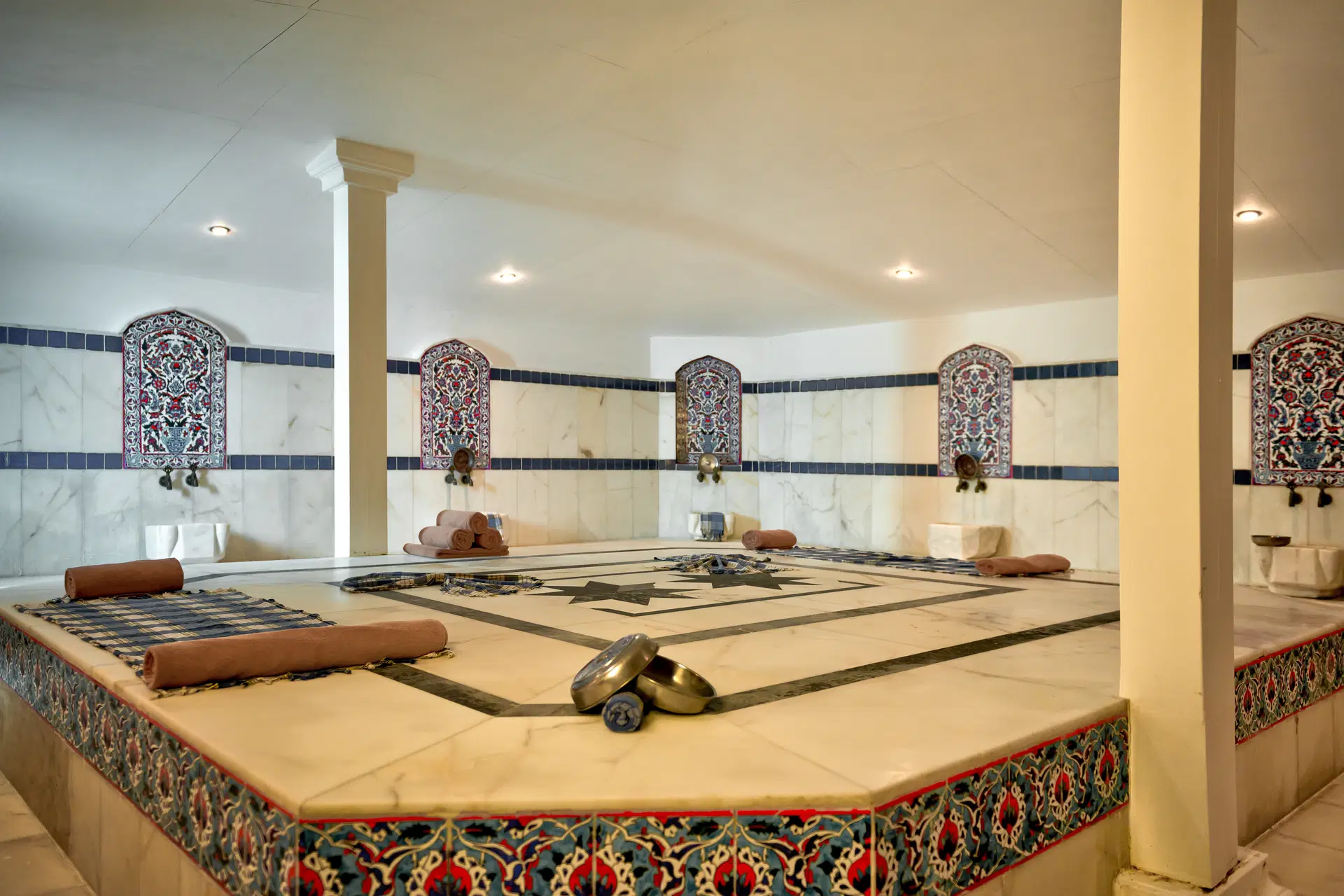HAMAM - cena cca 25 € Hamam neboli turecké lázně jsou dědicem nejlepších tradic římských termálních lázní - instituce kdysi nepostradatelné v každém městě, oblíbené místo zábavy starých Římanů, Řeků a Byzantinců. Postupem času se lázně natolik vryly do krajiny tureckých měst, že dnes většina Turků o jejich dávném původu ani neví. V samotných lázních se však čas změnil jen málo. Hamam je stejně tak relaxací pro tělo jako pro ducha. Sauny, koupele a masáže probíhají v uvolněné atmosféře plné vtipů a povídání. Krásné mramorové interiéry nabízejí mimo jiné mytí a peeling speciální rukavicí "kese", parní lázeň, horkou a studenou vodu, pěnové a olejové masáže. Návštěva hamamu patří vždy k těm nejpříjemnějším vzpomínkám na pobyt v Turecku.