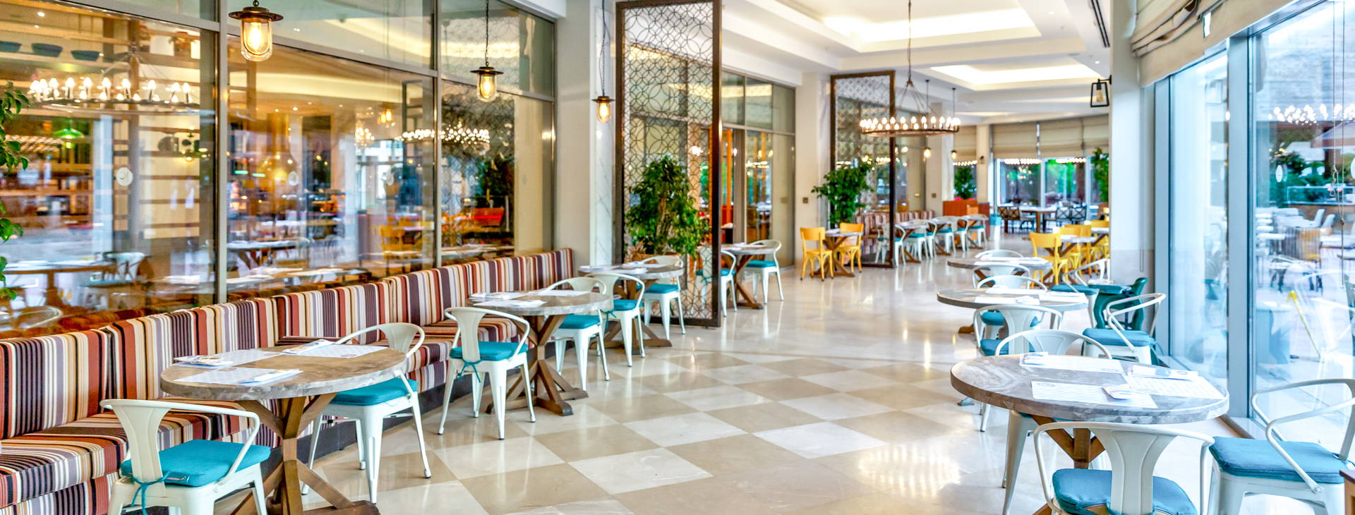 Všetky služby Incusive: raňajky (7:00-10:00), neskorá večera (10:00-11:00), obed (12:30-14:30), večera (19:00-21:30) a nočné občerstvenie (23:30-1:00 a 13:30-17:00) v hlavnej reštaurácii. Pre deti je k dispozícii detský bufet: raňajky (7:00-11:00), obed (12:00-14:30) a večera (18:30-21:30). Bary s rôznym občerstvením vrátane pizze, hamburgerov, šalátov, dezertov, ovocia, zmrzliny vo vybraných časoch počas dňa. Teplé nápoje, džúsy, miestne nealkoholické nápoje a vybrané importované alkoholické nápoje k dispozícii 24 hodín denne vo vybraných baroch, ostatné bary počas otváracích hodín.