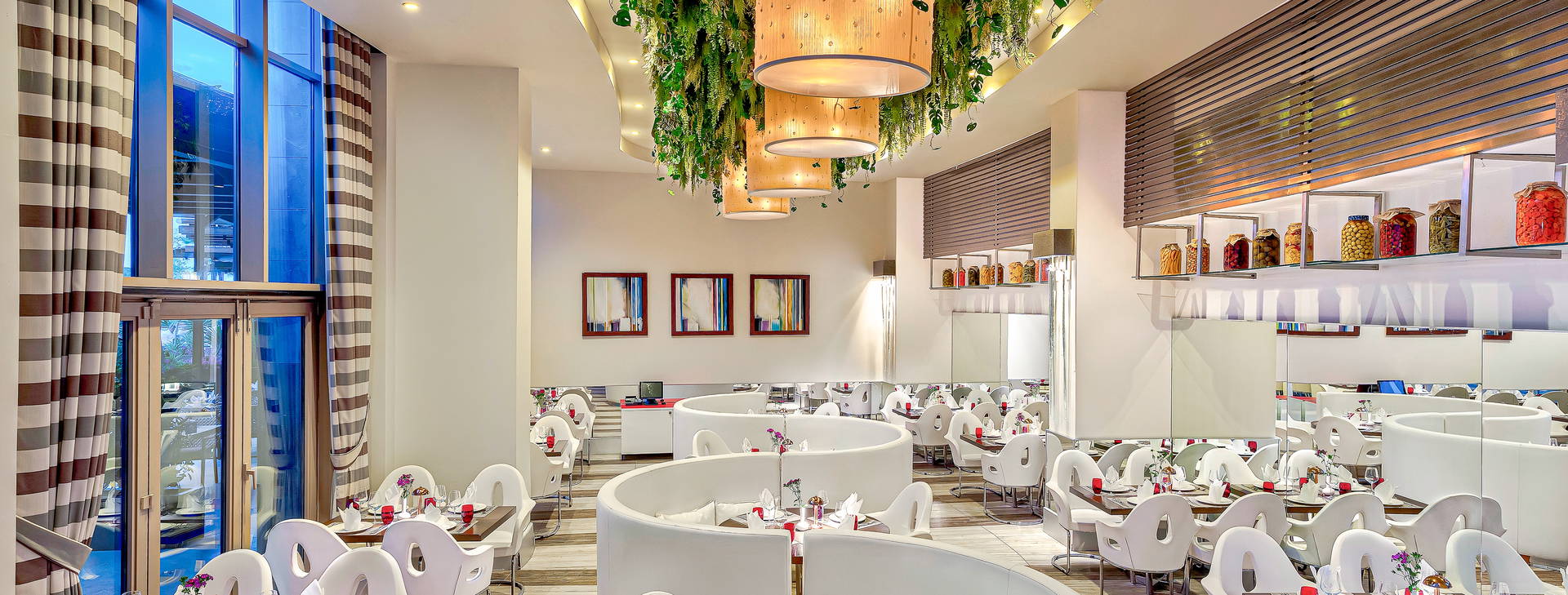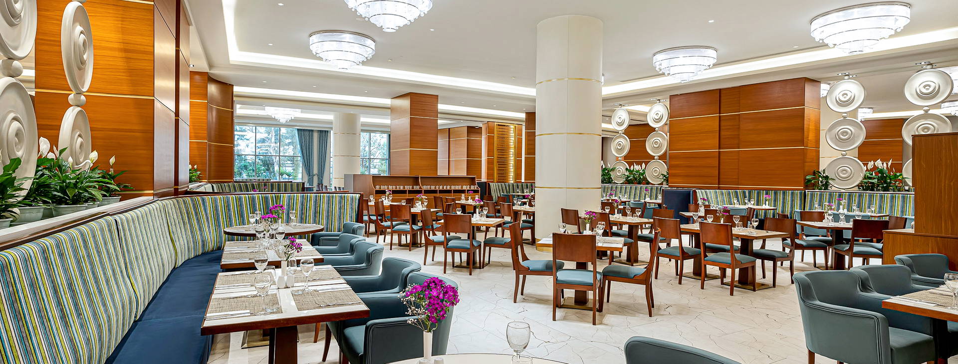 Ultra All Inclusive: raňajky (7:00-10:30), neskoré raňajky (10:30-11:00), obed (12:30-14:30), večera (19:00-21:30) a nočný bufet (23:30-02:00) v hlavnej reštaurácii formou bufetu. Tiež: občerstvenie (12:00-16:00) cukráreň (10:30-18:30). Miestne a niektoré dovážané alkoholické a nealkoholické nápoje, k dispozícii vo vybranom bare 24 h, v ostatných baroch počas otváracích hodín. Výber káv a čajov, vín, koktailov, limonád, čerstvo vylisovaných džúsov v baroch a rôzne možnosti v hlavnej reštaurácii, cukrárni, snack bare. Koncept ponúka pestrú medzinárodnú kuchyňu v jedinečnej atmosfére.