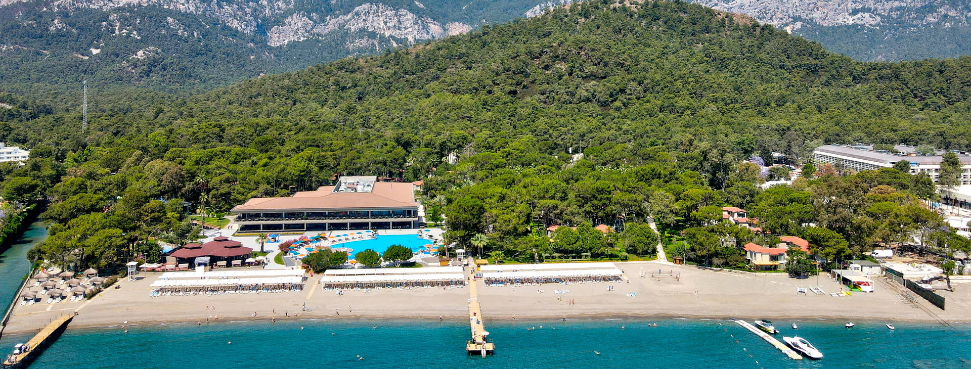 Luxusný hotel malebne obklopený udržiavanou veľkou záhradou a horami sa nachádza v meste Goynuk, priamo pri širokej a krásnej pláži. Do centra Kemeru je to približne 6 km a od letiska v Antalyi 46 km. Hotel pozostáva z jedno- alebo dvojposchodových viliek (zrekonštruovaných v roku 2016)