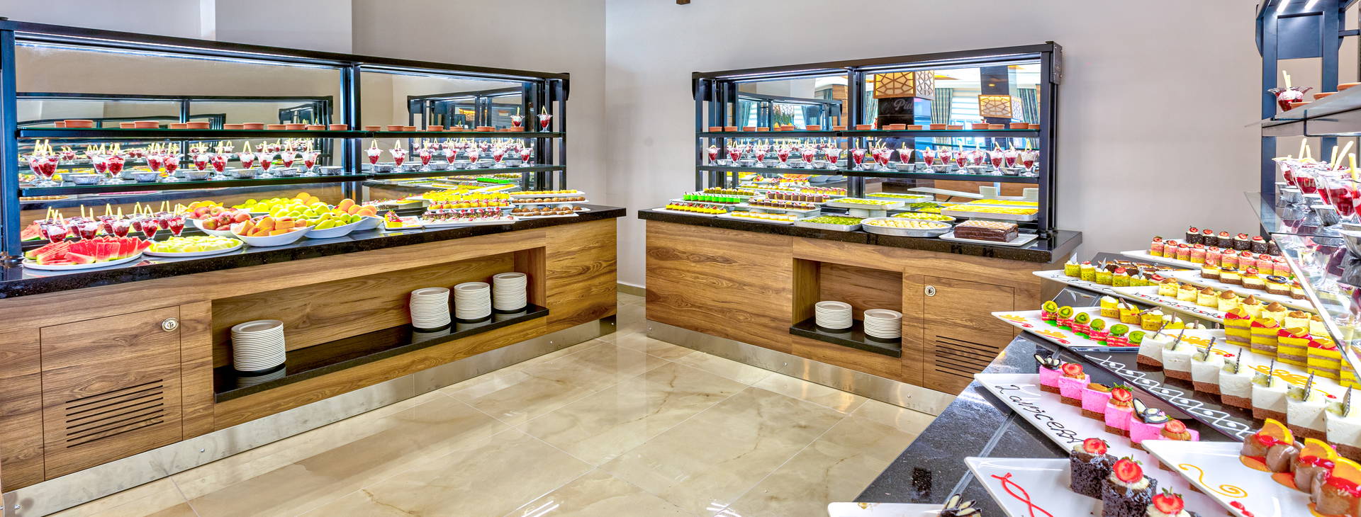 Ultra All Inclusive: raňajky (07:00-10:30), obed (12:30-14:30), večera (19:00-21:00) formou bohatého bufetu, tradičná turecká pochúťka gözleme (10:30-16:00), občerstvenie (10:30-16:00), sladkosti (10:00-21:00), nočný bufet (00:00-07:00). Miestne destiláty a niektoré dovážané destiláty a nealkoholické nápoje sú k dispozícii v určených baroch v areáli hotela v čase 10:00-02:30. Za poplatok: ostatné dovážané nápoje.