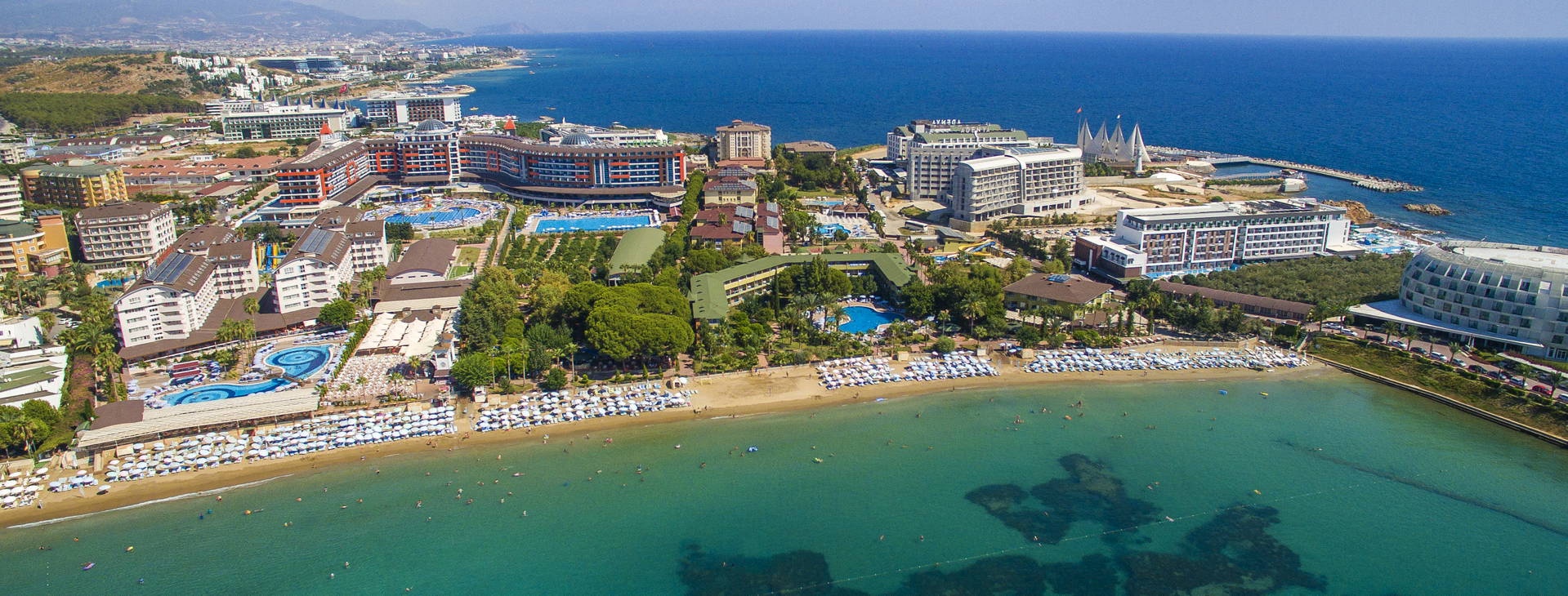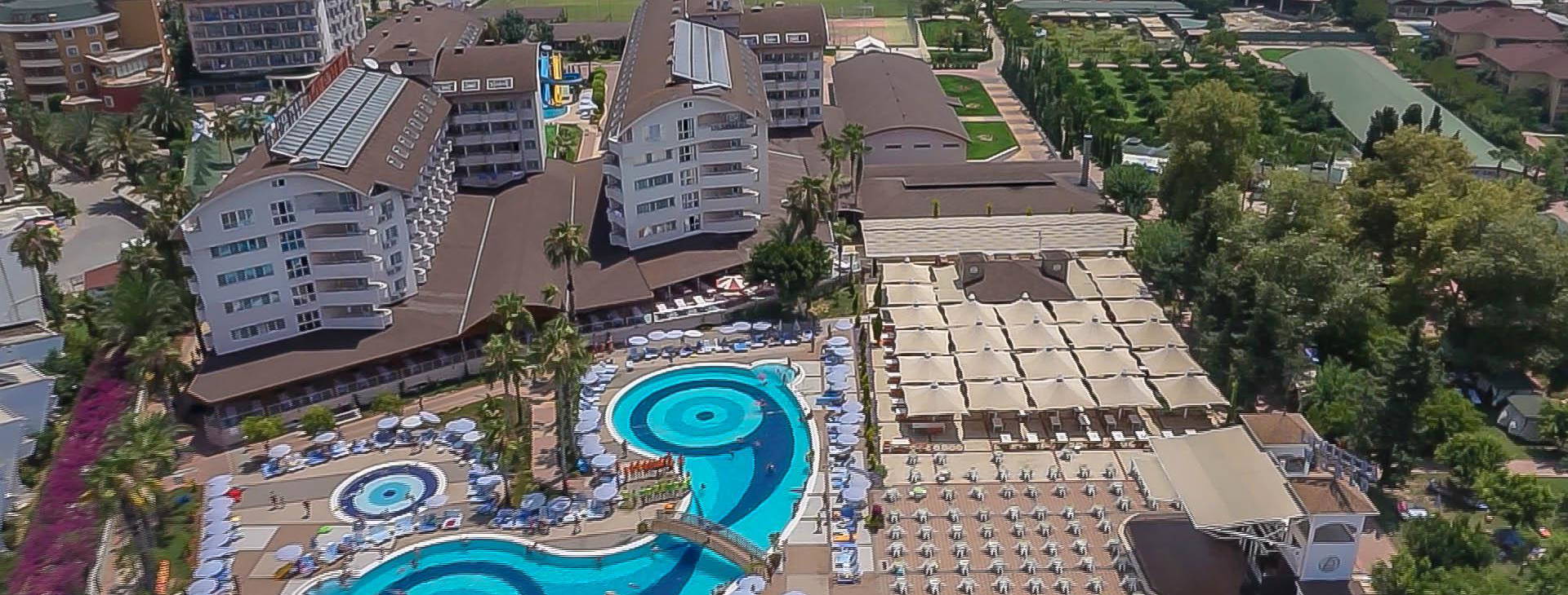 .Hotel pozostáva z 10 budov, hostia sa môžu voľne pohybovať medzi jednotlivými budovami a využívať všetky aktivity v celom komplexe. Recepcia 24 h, výťahy, 2 hlavné reštaurácie, a'la catre: rybia reštaurácia (otvorená od polovice mája do októbra, nutná rezervácia za poplatok cca 100 TL). 11 barov: pri bazéne, bary s rýchlym občerstvením, lobby, diskotéka, 7 bazénov vrátane 2 so šmykľavkami otvorených v určitých časoch, 7 detských bazénov, Aquapark s 19 šmykľavkami, 8 detských bazénov, krytý bazén (momentálne zatvorený), vírivka.