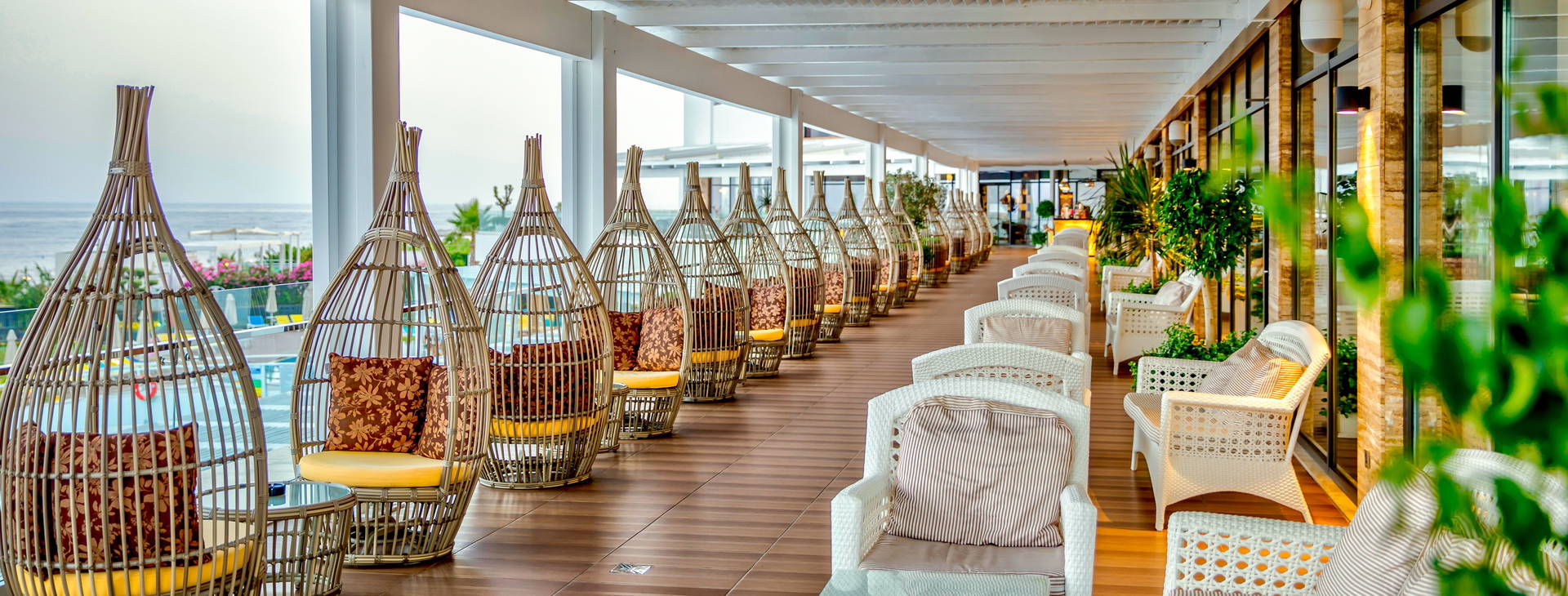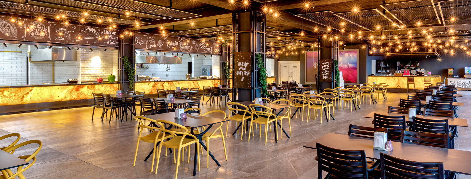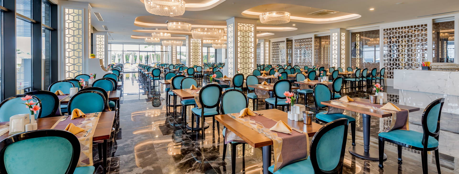 All Inclusive: raňajky (07:00-10:00), neskorá večera (10:00-11:00), obed (12:30-14:00), večera (19:00-21:00) formou bufetu. Tiež nočné občerstvenie (23:00-06:00) v hlavnej reštaurácii, občerstvenie ako zmrzlina, ovocie, palacinky gözleme (11:00-19:00) podávané v plážovom bare, cukráreň (11:00-18:00). Miestne alkoholické a nealkoholické nápoje k dispozícii v 24-hodinovom bare, ostatné bary počas otváracích hodín. Za príplatok: importované alkoholické a nealkoholické nápoje, čerstvé ovocné šťavy.