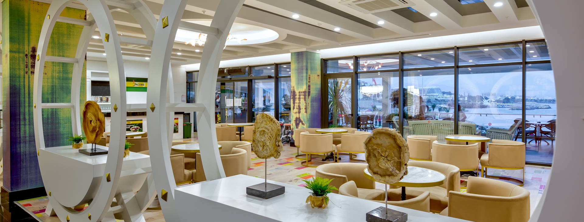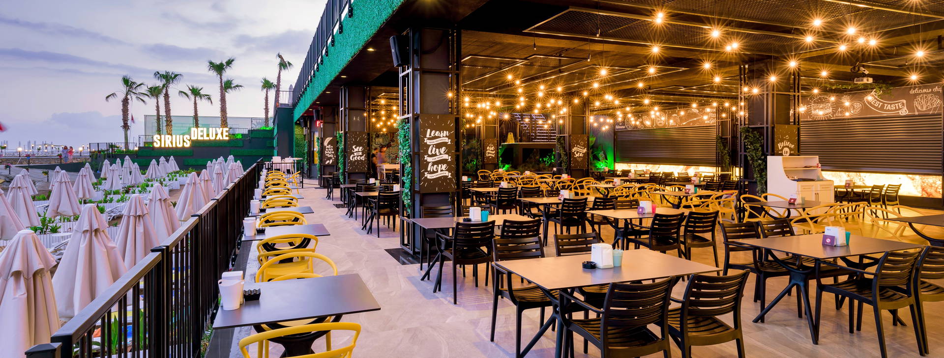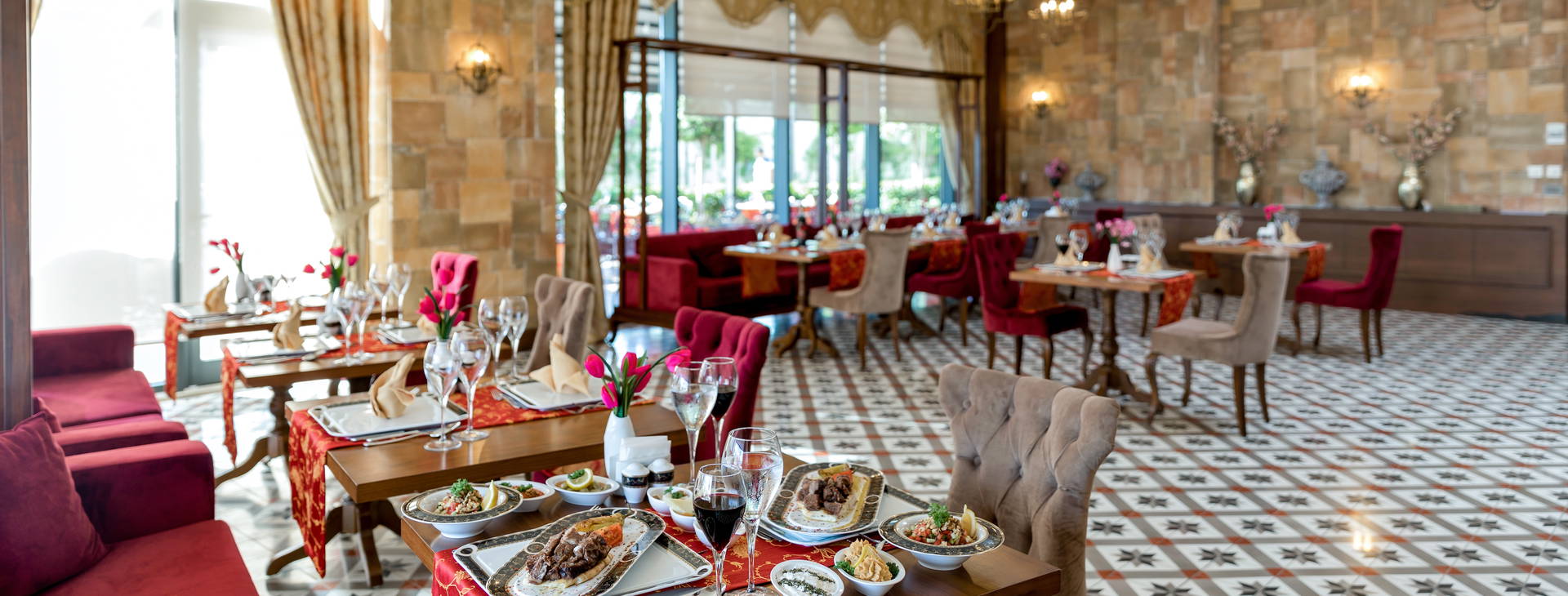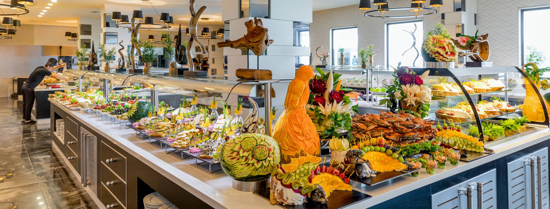 All Inclusive: raňajky (07:00-10:00), neskorá večera (10:00-11:00), obed (12:30-14:00), večera (19:00-21:00) formou bufetu. Tiež nočné občerstvenie (23:00-06:00) v hlavnej reštaurácii, občerstvenie ako zmrzlina, ovocie, palacinky gözleme (11:00-19:00) podávané v plážovom bare, cukráreň (11:00-18:00). Miestne alkoholické a nealkoholické nápoje k dispozícii v 24-hodinovom bare, ostatné bary počas otváracích hodín. Za príplatok: importované alkoholické a nealkoholické nápoje, čerstvé ovocné šťavy.
