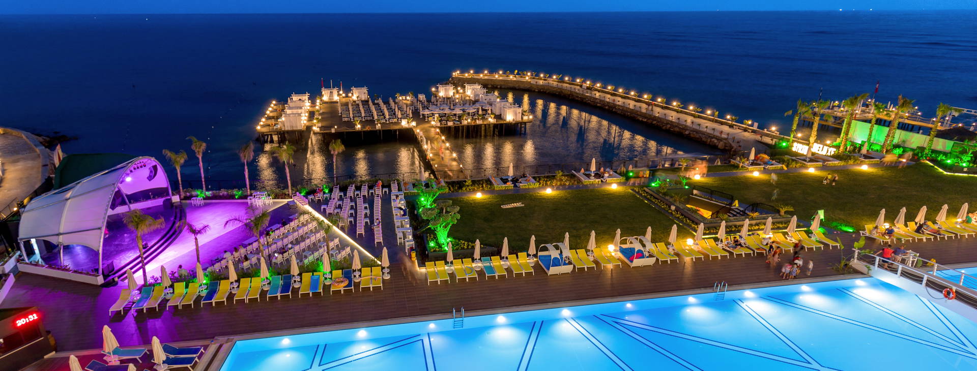 24-hodinová recepcia, parkovisko, hlavná reštaurácia, 2 a'la carte reštaurácie: regionálna, turecká (zdarma raz za pobyt, pre hostí s pobytom dlhším ako 7 dní, nutná rezervácia vopred), 3 bary vrátane 24-hodinového lobby baru, plážového baru (10:00-24:00), baru pri bazéne (10:00-17:00). Tiež 4 bazény vrátane: hlavný vonkajší bazén, vnútorný bazén, detský bazén, bazén so šmykľavkami. Za poplatok: práčovňa, obchody, lekár, kaderníctvo, stráženie detí, požičovňa áut.