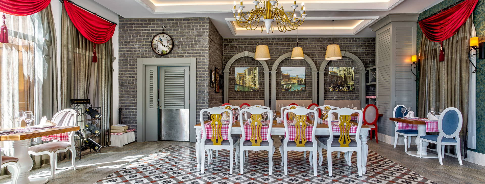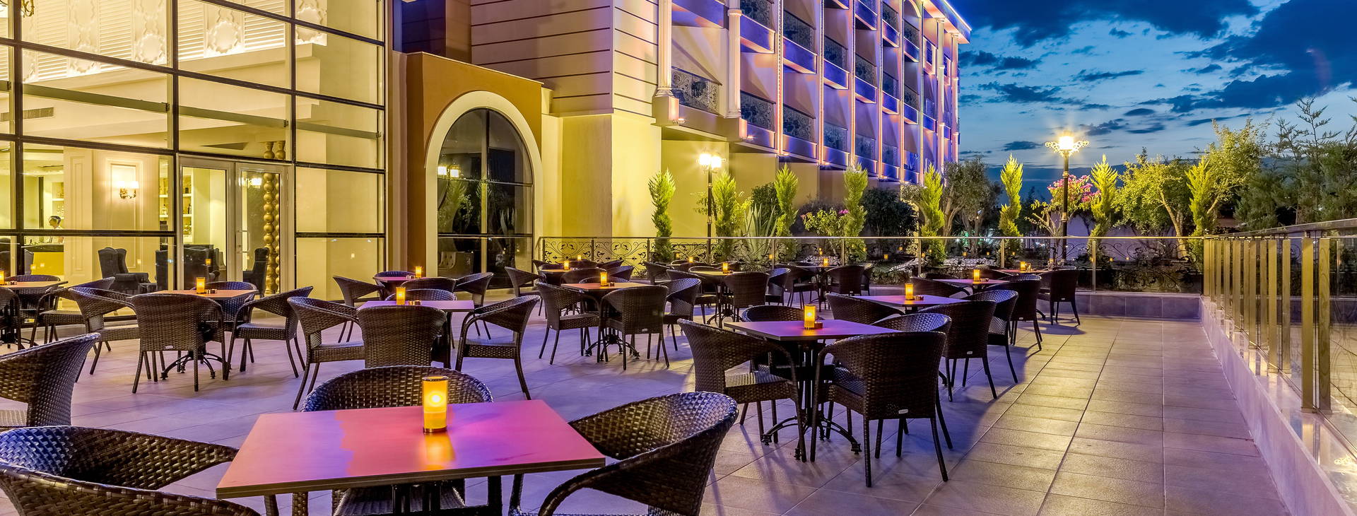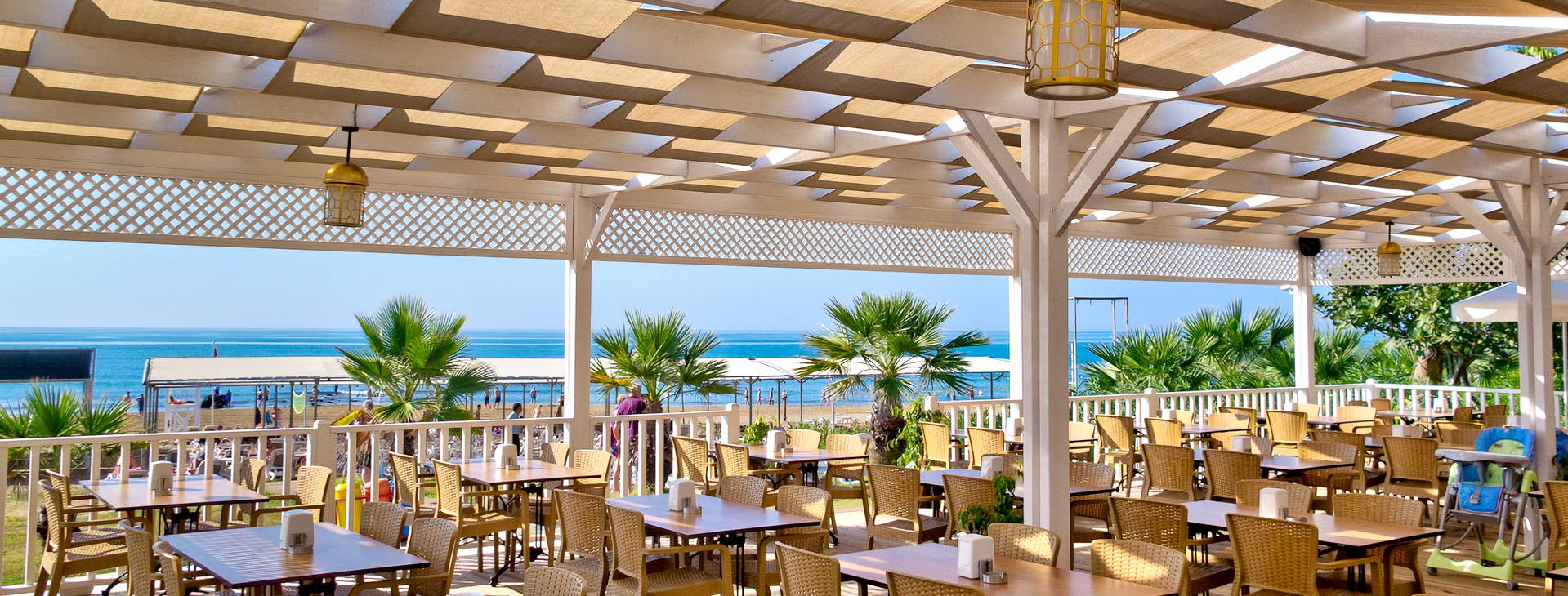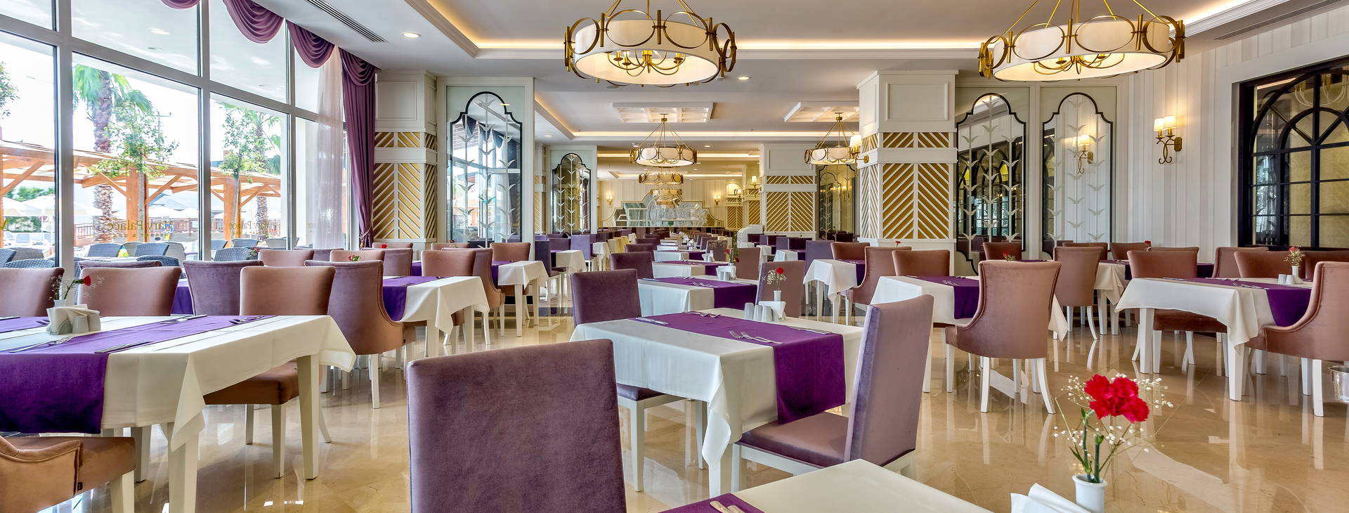 All Inclusive: raňajky (07:00-10:00), neskorá večera (10:00-10:30), obed (12:30-14:00), večera (18:30-20:30) formou bufetu. Okrem toho nočné občerstvenie (23:00-07:00) v hlavnej reštaurácii, občerstvenie ako zmrzlina, vafle, koláče, gözleme torty (12:00-17:00), cukráreň (12:00-18:00). Miestne alkoholické a nealkoholické nápoje k dispozícii v baroch počas otváracích hodín. Za príplatok: importované alkoholické a nealkoholické nápoje, fľaškové nápoje, nápoje v disco bare, čerstvé ovocné šťavy.