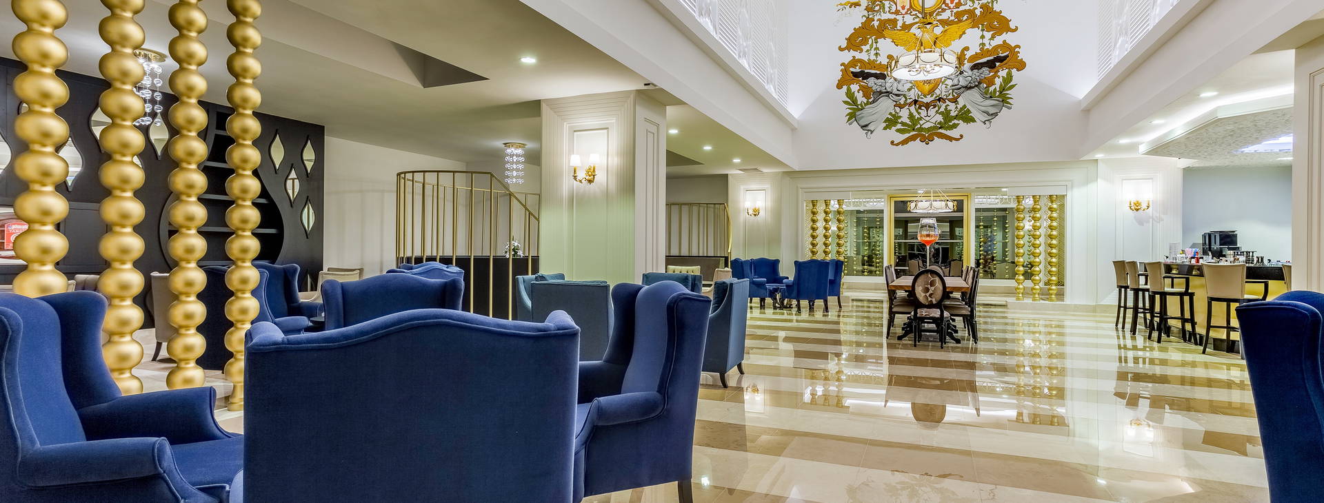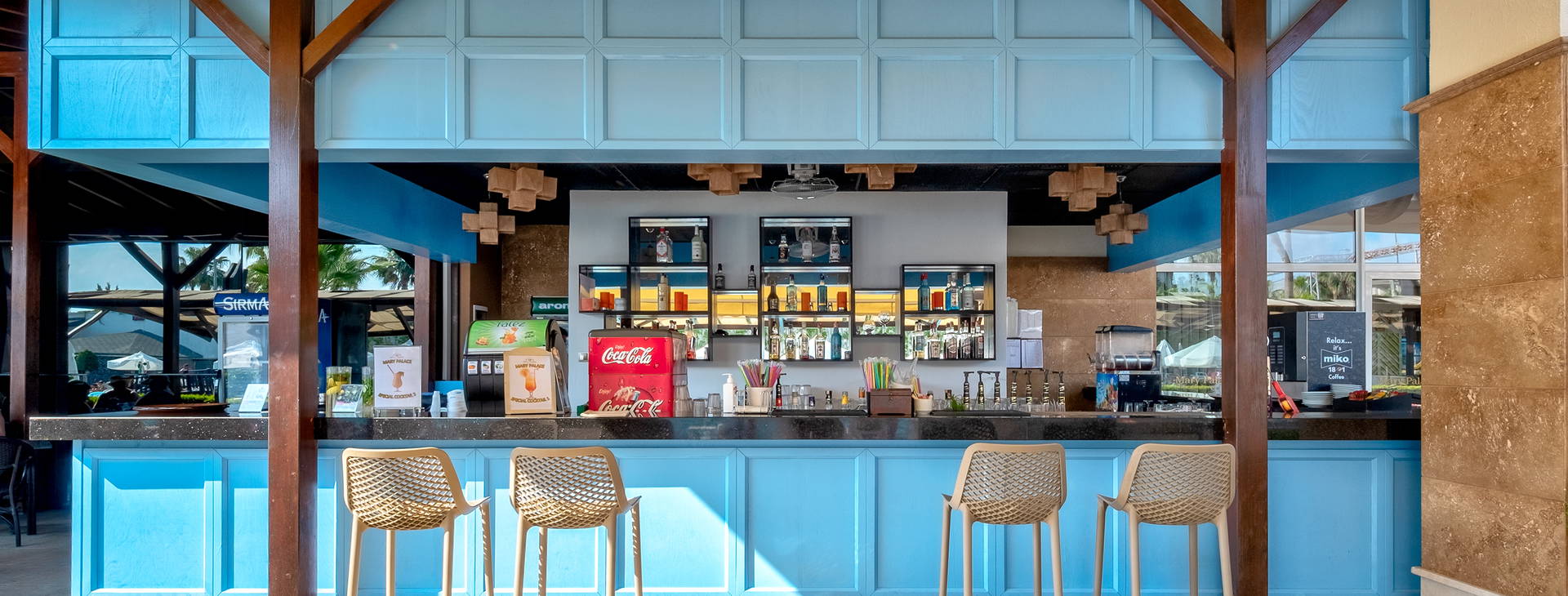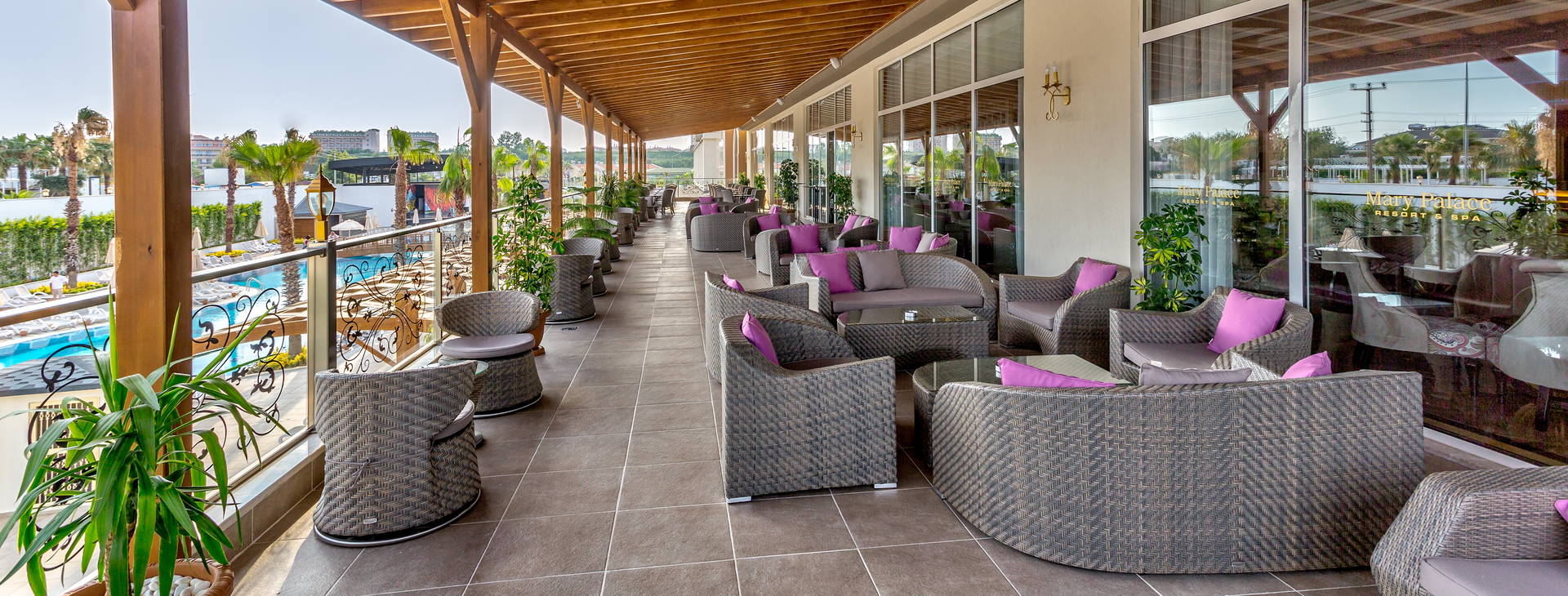 Recepcia 24 hodín, hlavná reštaurácia, 2 a'la carte reštaurácie: talianska, turecká (zdarma raz za pobyt, nutná rezervácia vopred), 5 barov vrátane lobby baru (10:00-24:00), baru na pláži (10:00-18:00), baru pri bazéne (10:00-18:00). Tiež 5 bazénov vrátane: hlavný vonkajší bazén, vnútorný bazén, detský bazén, bazén so šmykľavkami. Za poplatok: práčovňa, obchody, lekár, kaderníctvo, požičovňa áut.
