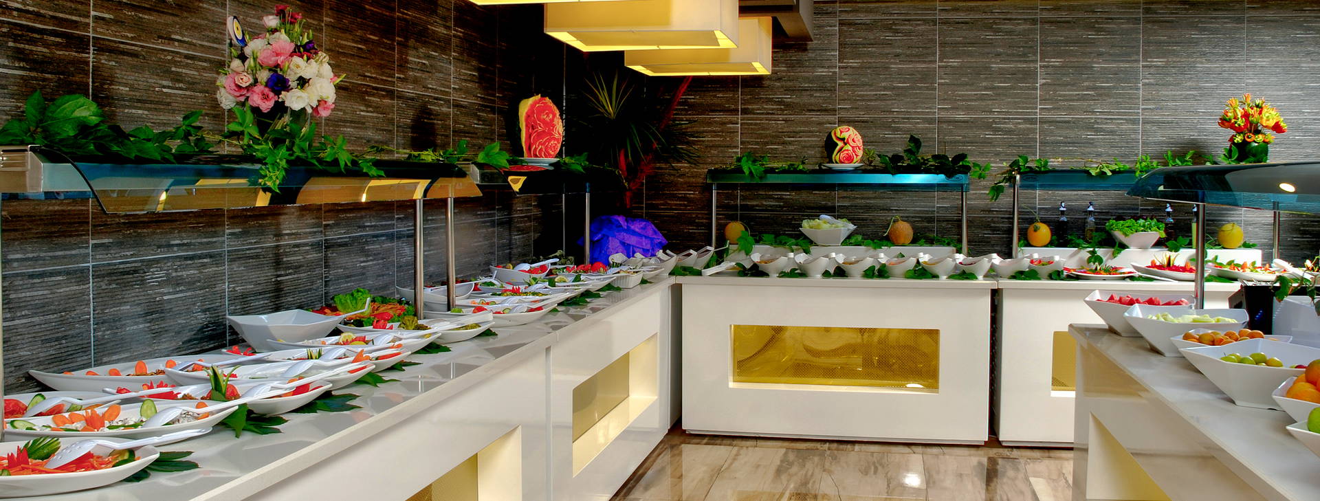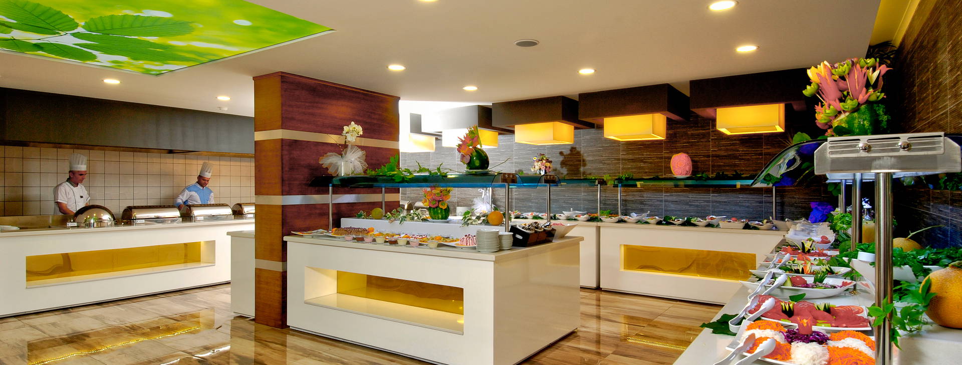 All Inclusive: raňajky (07:30-09:30), neskorá večera (09:30-10:00), obed (12:30-14:00), večera (18:30-20:30) formou bufetu. Okrem toho palacinky Gozleme (11:00-17:00), káva, čaj, zákusky v bare pri bazéne (16:00-17:00). Nealkoholické nápoje a miestne alkoholické nápoje k dispozícii v bare pri bazéne (10:00-24:00). Za poplatok: čerstvo vylisované džúsy, turecká káva, koktaily, importované alkoholické nápoje, jedlo a nápoje v plážovom bare.