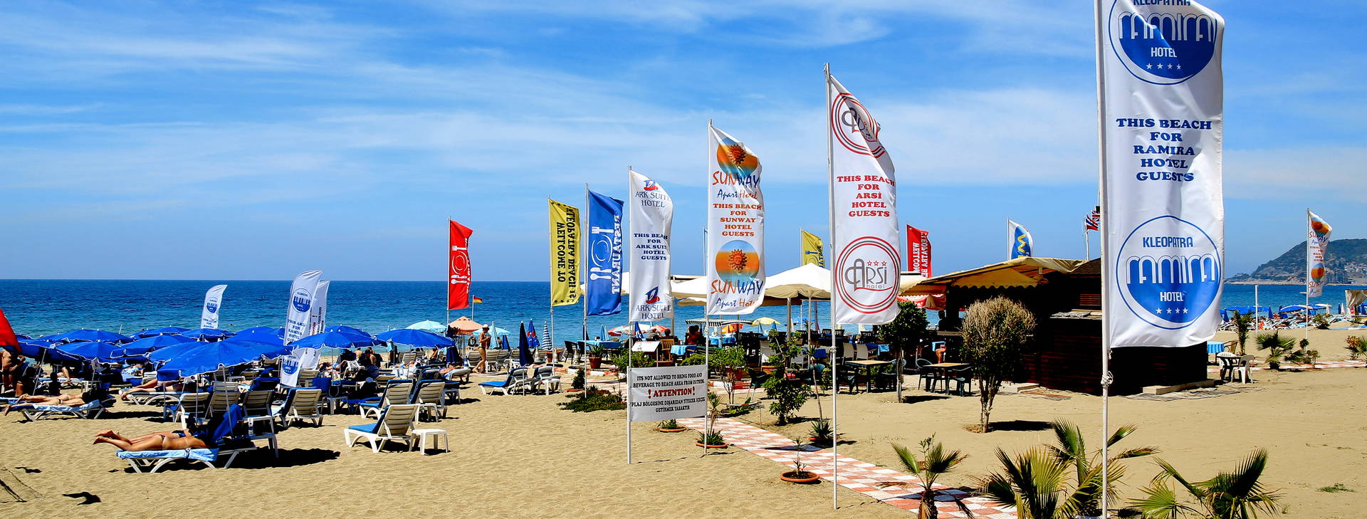 Hotel sa nachádza približne 800 m od širokej, piesočnatej a nepochybne najkrajšej pláže Tureckej riviéry - Kleopatrinej pláže. Plážové osušky zdarma (možnosť výmeny za príplatok 1 EUR). Ležadlá a slnečníky na pláži k dispozícii zdarma. K dispozícii je aj bezplatná hotelová kyvadlová doprava na pláž. Časy a dni autobusu sú k dispozícii na recepcii hotela.