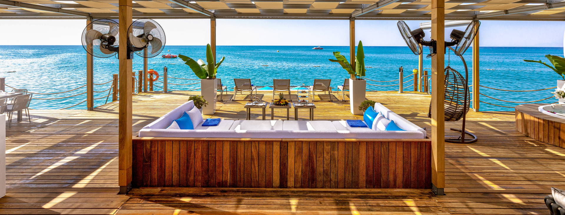 .Prímo pri hoteli sa nachádza dlhá, široká a piesočnatá pláž ocenená Modrou vlajkou, na ktorej sú k dispozícii bezplatné ležadlá, slnečníky a osušky. Kabíny sú k dispozícii za príplatok.