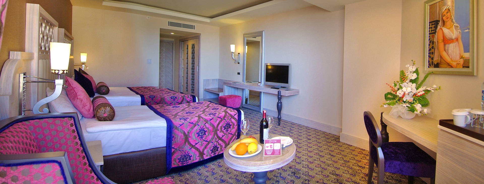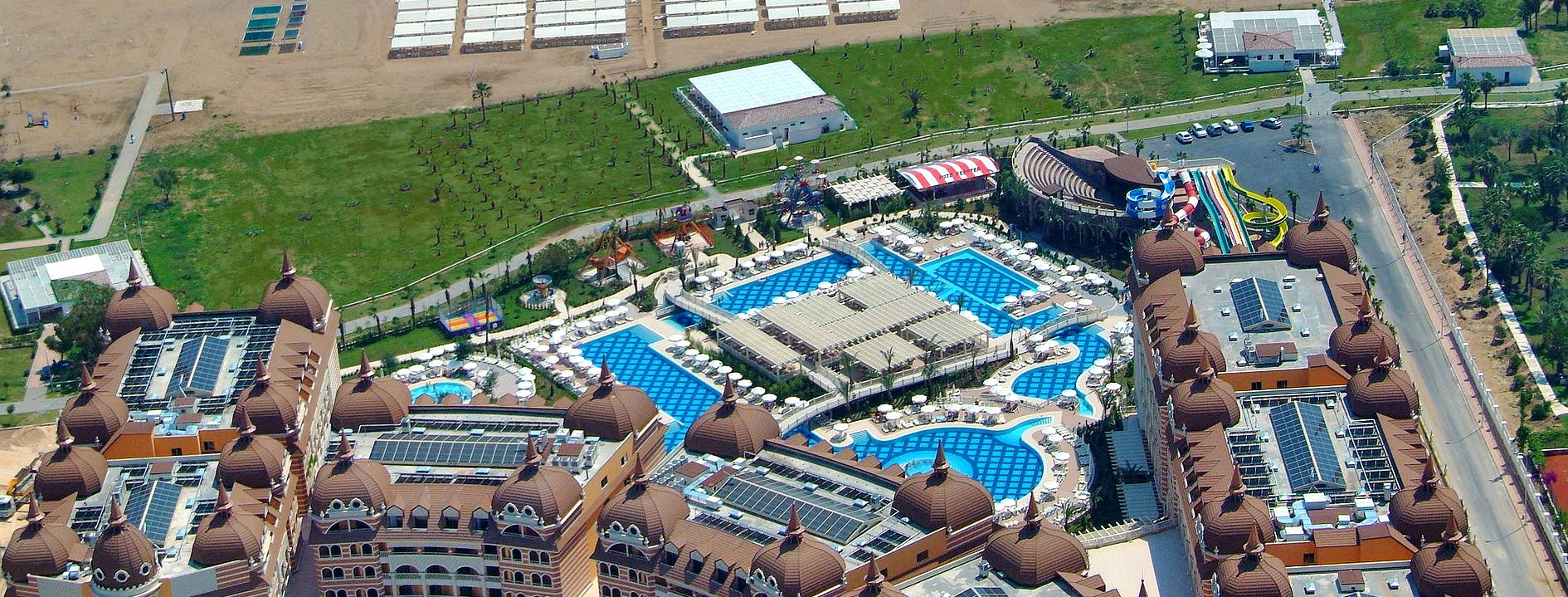.24 h recepcia, hlavná reštaurácia, 5 a'la carte reštaurácií: turecká, talianska, rybia, mexická a čínska (každá za poplatok cca 10 EUR/osoba, rezervácia nutná), 7 rôznych barov vrátane: lobby baru, baru pri bazéne, disco baru, baru na pláži. 6 bazénov (4 vonkajšie a 2 vnútorné): 1 veľmi veľký bazén nepravidelného tvaru, bazén s 5 šmykľavkami (otvorený v určitých časoch), detské brodítko, detský bazén s 3 šmykľavkami, bezplatný lunapark (pre deti staršie ako 7 rokov, pre mladšie deti - potrebný písomný súhlas rodičov), detské ihrisko. Za poplatok: izbová služba, opatrovanie detí (nutná rezervácia vopred), kaderníctvo, obchody, požičovňa áut, práčovňa, fotograf.