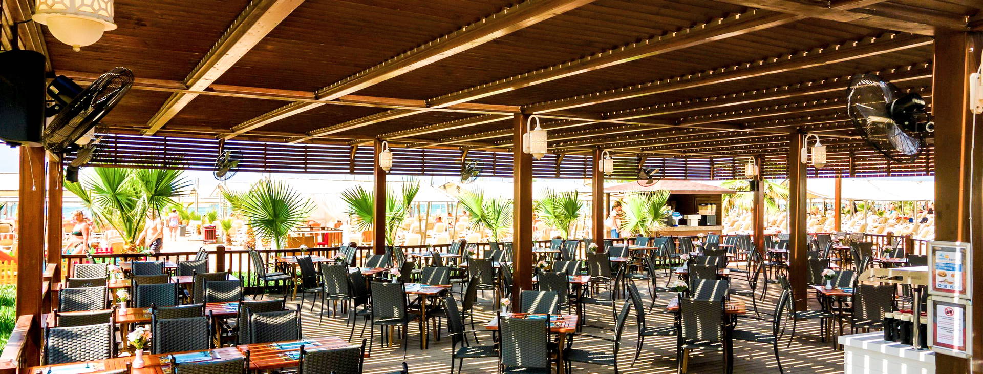 Ultra All Inclusive: raňajky (07:00-10:00), neskoré raňajky (10:00-11:00), obed (13:00-14:30), večera (19:00-21:30), nočné občerstvenie (24:00-07:00), široký výber občerstvenia počas dňa: vrátane kebabu, pizze, ovocia, zmrzliny, cukrárne (16:00-24:00). Nealkoholické a miestne alkoholické nápoje a niektoré importované nápoje k dispozícii v baroch s nepretržitou prevádzkou. Za príplatok: ostatné dovážané alkoholické nápoje, čerstvé ovocné šťavy, nápoje vo fľašiach.